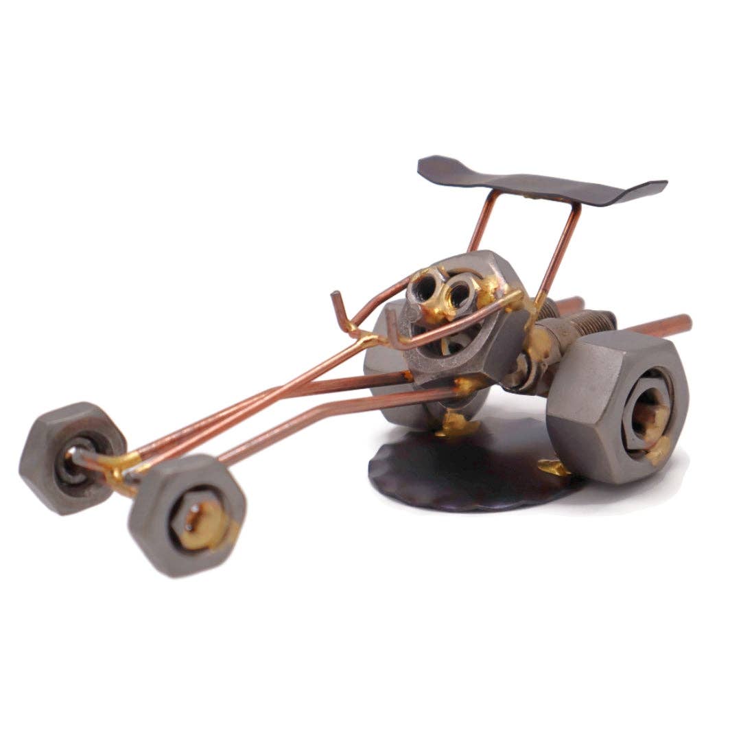 We count on mechanics to keep our vehicles running like a dream—and this spark plug mechanic figurine is a clever tribute to their skills! Made from real auto parts including a recycled spark plug, tiny wrench, steel, and brazing rods, this metal sculpture captures the heart of the trade with a fun, industrial twist. Standing approximately 5" tall, it makes a standout desk accessory, shelf decoration, or gift for the gearhead in your life. Whether used as a conversation piece in a garage office or a quirky nod to the profession, it’s a unique way to honor those who keep the wheels turning. Each figurine is hand-brazed in the USA by Rock Creek Metal Craft, ensuring every piece is one-of-a-kind. Built from durable materials and designed with a sense of humor, it’s a lasting collectible that celebrates hard work with a spark of creativity. SKU# 296 Perfect for: Mechanics • Car lovers • Auto shop décor • Father’s Day gifts Details: * Handmade from recycled metal parts including a spark plug * Approx. dimensions: 5" tall x 3" wide * Individually crafted in the USA * Strong, durable, and made to last