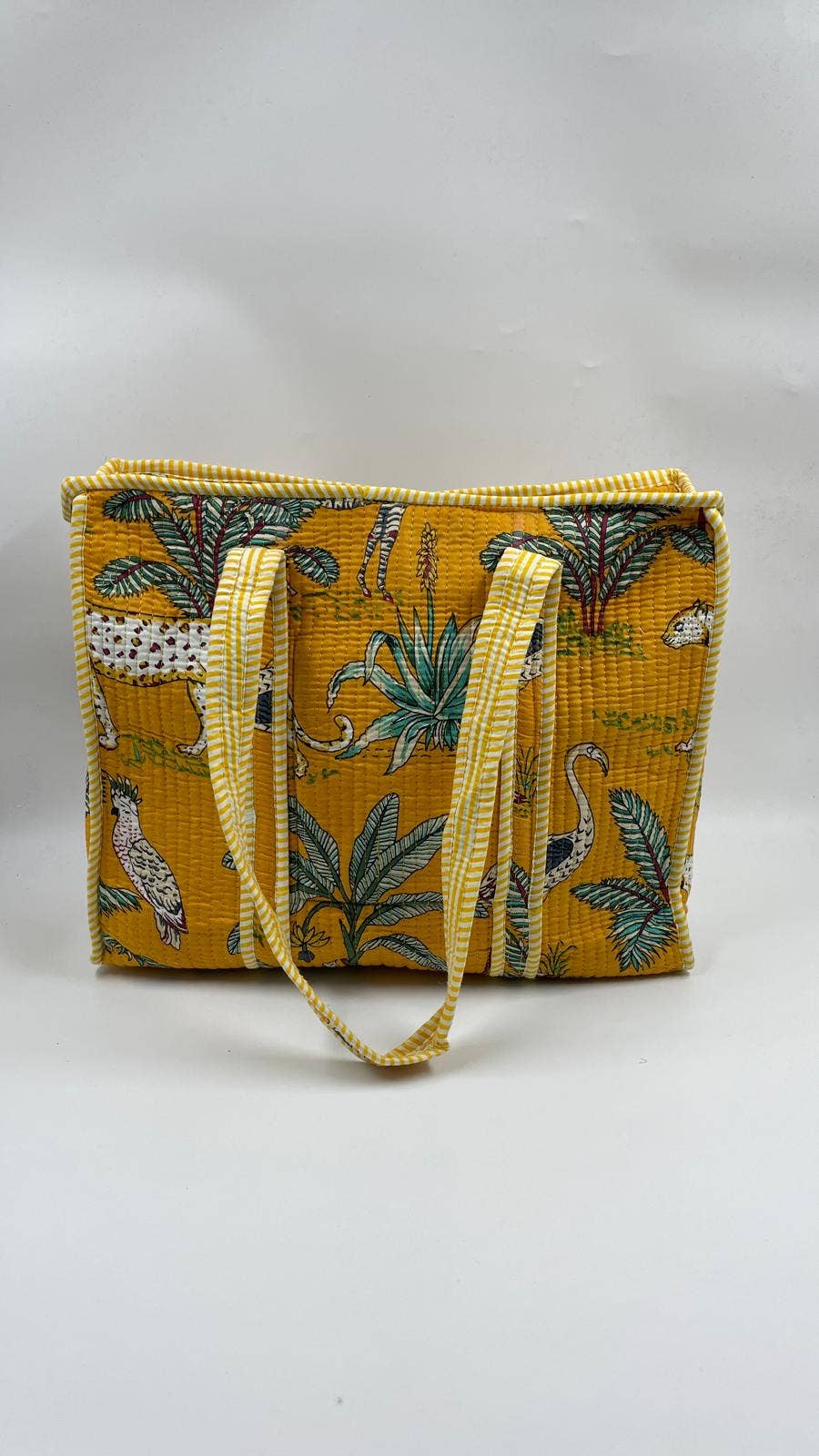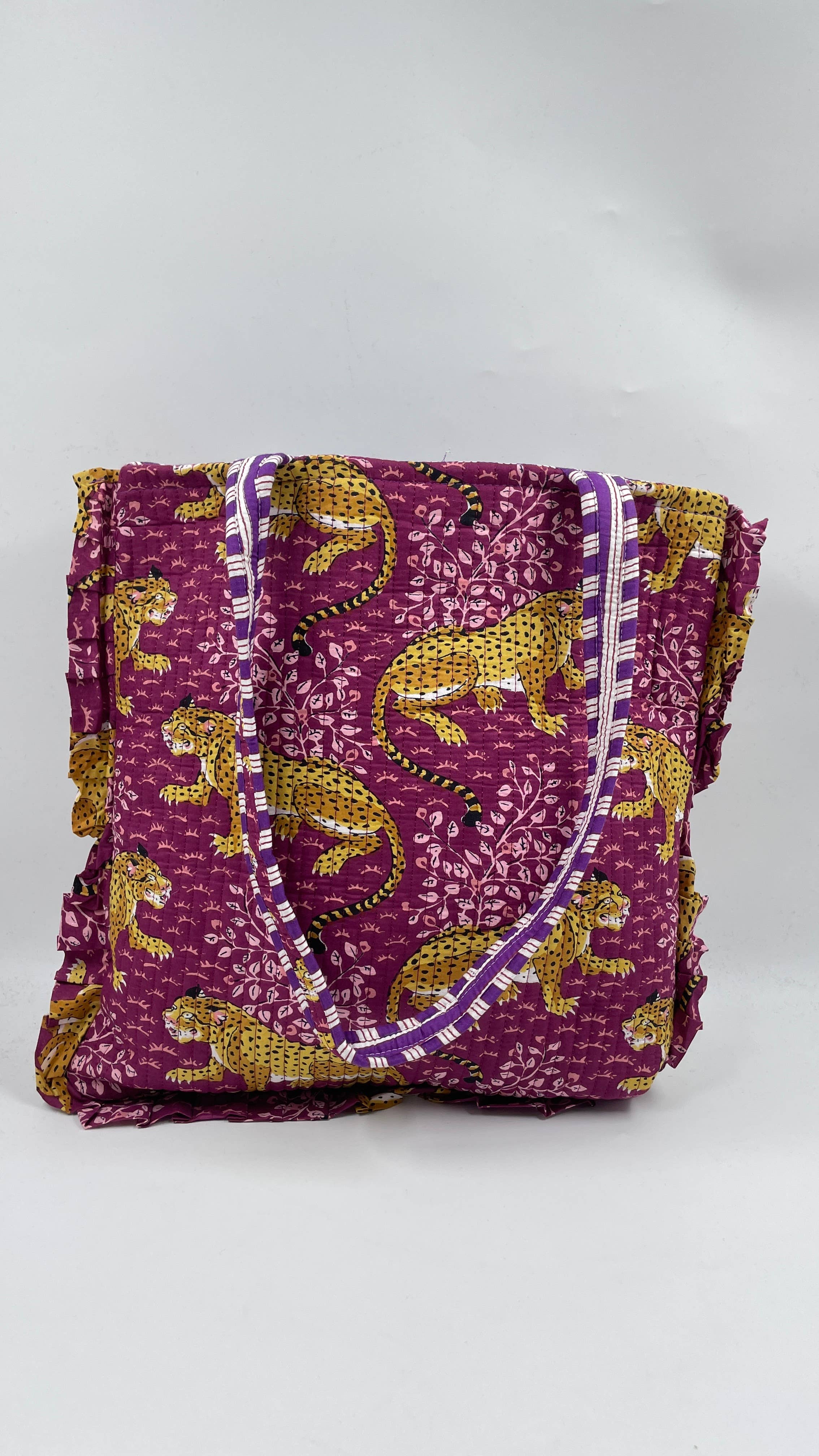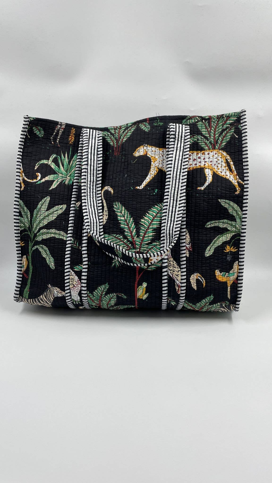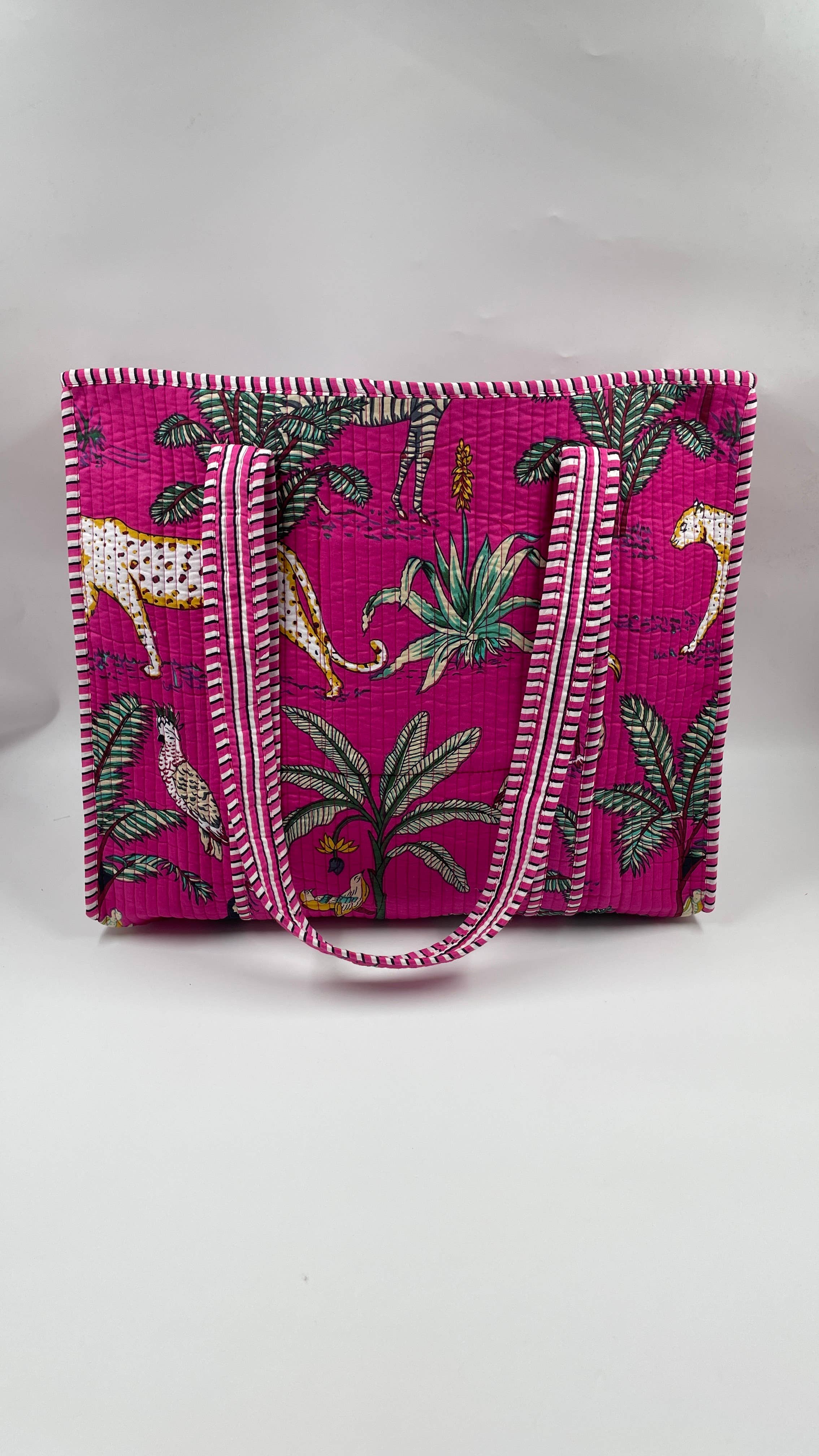 Animal Print Cotton Kantha Quilted Boho Tote Bag with Zip