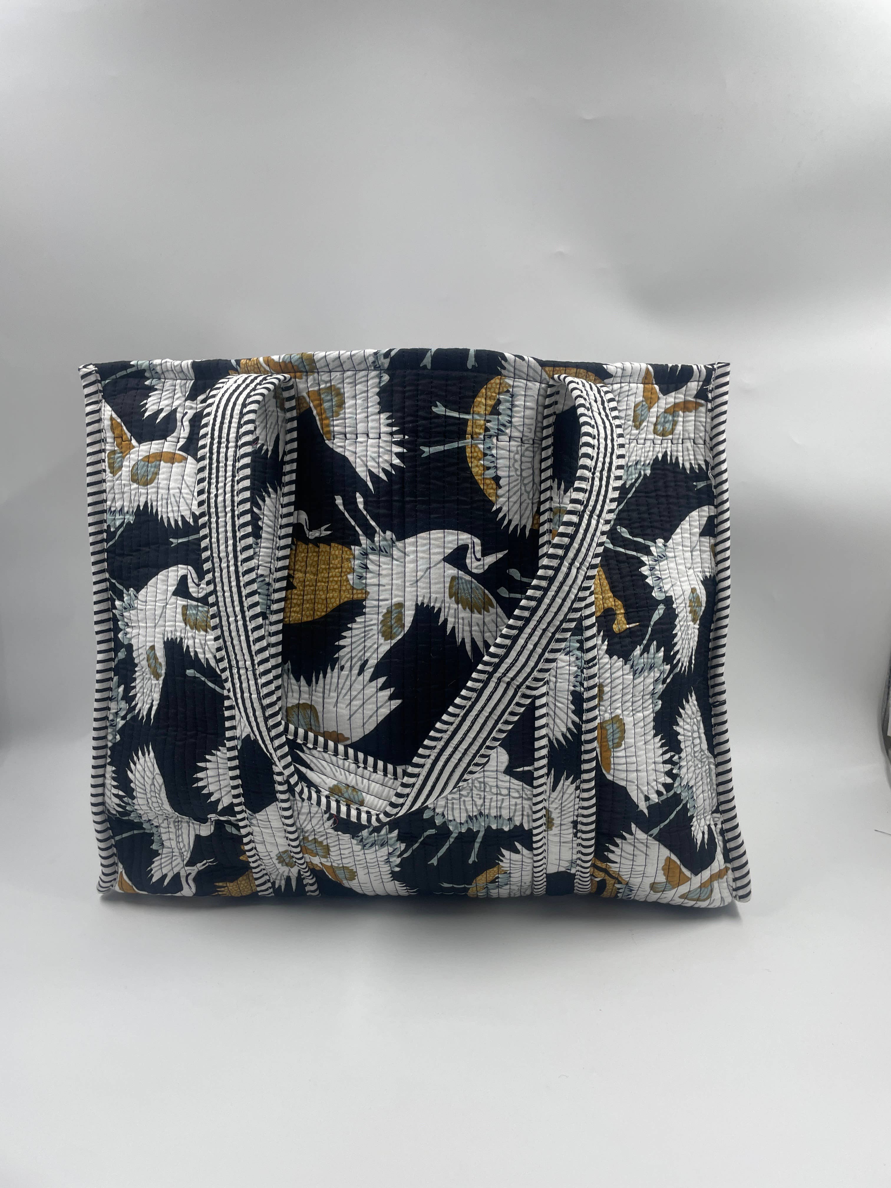 Extra Large Bird Print Cotton Kantha Quilted Boho Tote Bag