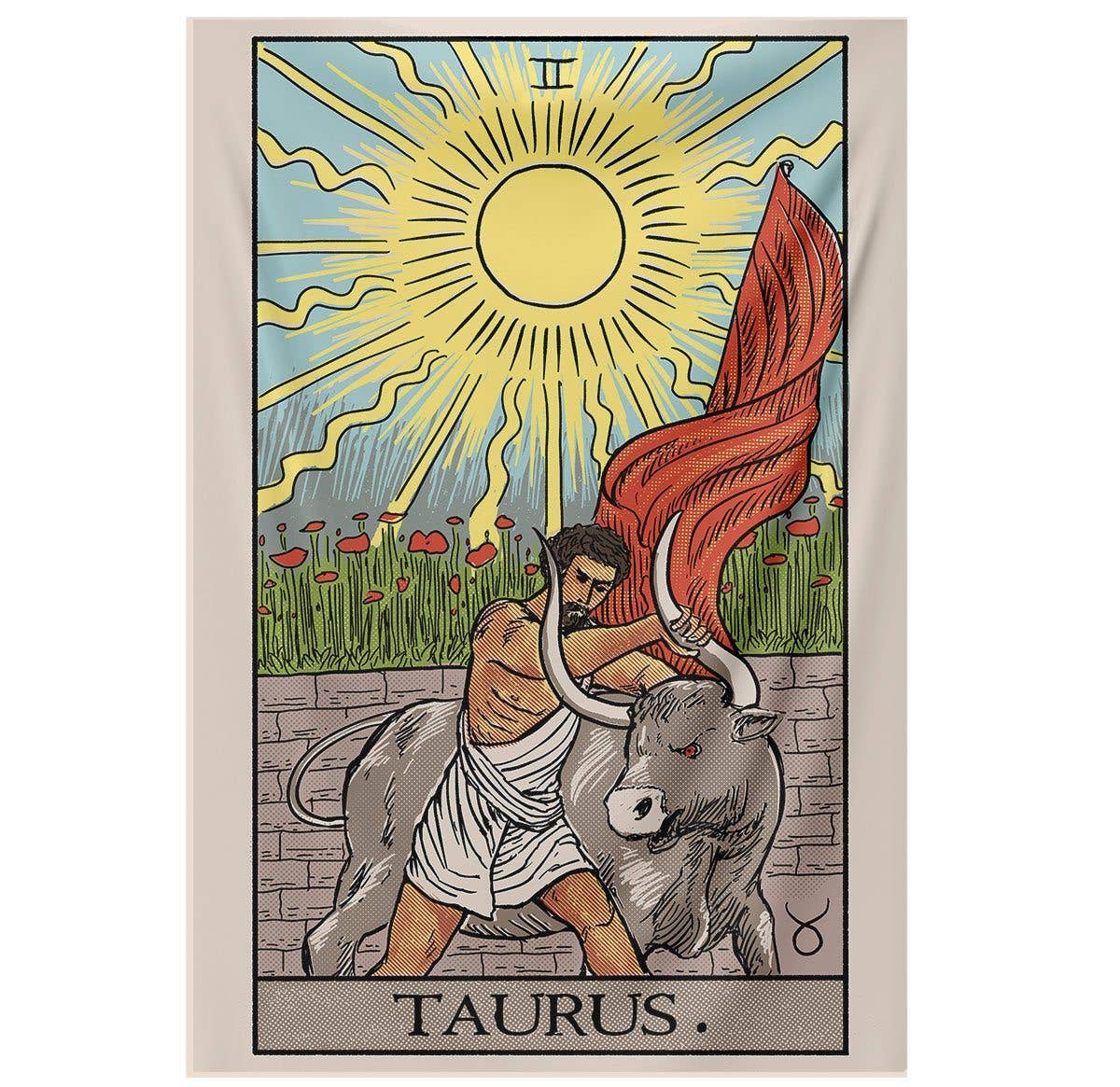 The Virgo Tarot Tapestry is inspired from the tarot card "Temperance". Virgo is represented by the maiden, who bares wheat in her arms. Morning glory flower represents the thoughtful and reflective nature of Virgo. The Nirvana Threads Zodiac Tarot tapestry collection brings your astrological symbol to life with the timeless style of the Rider Waite Smith tarot deck. Featuring exclusive original artwork by Aji Abram. All of our tapestries are: * Easy to hang and lightweight * Machine washable for convenient care * Made of soft and sturdy 100% polyester