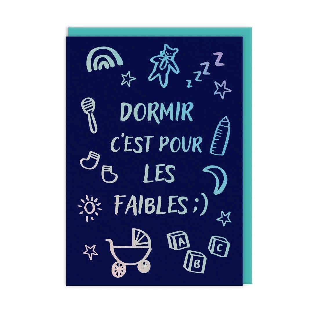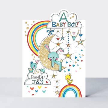 New baby card. Inside says: Congratulations. This card comes 'naked', with an eco-clasp. If you'd like it wrapped in cellophane instead, just send us a message when you order. (If you do we'll wrap all the cards you order.)