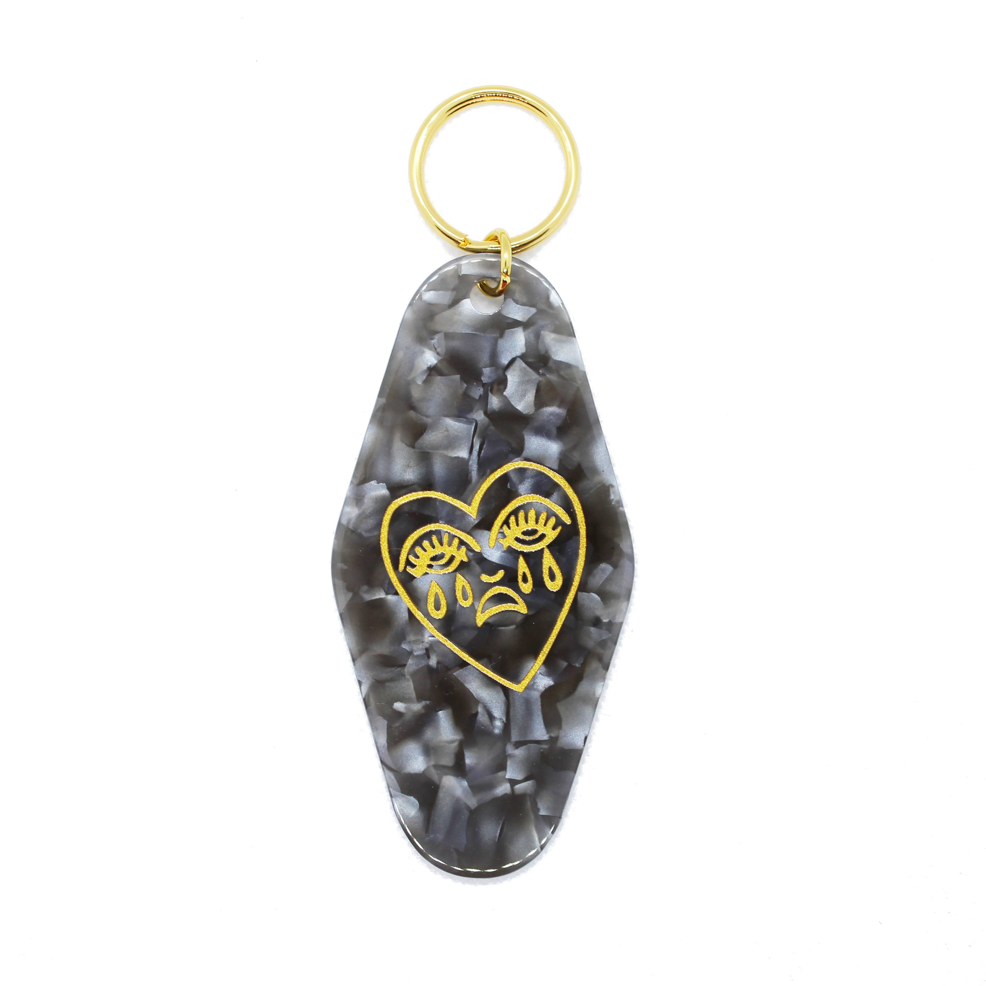 Crying Heart Motel Keytag Keychain - Black Marble