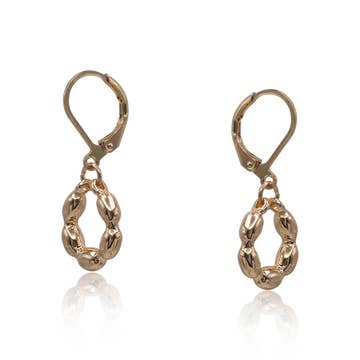 Handmade earrings in gold-plated brass – Natural kunzite stone These handmade earrings combine the delicacy of a pink natural stone with a finely crafted vegetal pattern in gold-plated brass. Each earring consists of a flat round bead in natural stone with soft and luminous shades, extended by an elegant chain with golden leaf patterns and a fine chain adding movement and lightness. Feminine, refined, and easy to wear, they charm with their natural spirit and timeless style. Their lightness allows them to be worn daily, perfect for sensitive ears. They naturally find their place in: - women's concept stores - artisanal jewelry shops - florists and nature-themed stores - gift shops - wellness shops Technical characteristics: - Material: gold-plated brass - Stone: pink natural kunzite stone - Fastening: sleepers - Total length: (pattern + sleeper) 5.5 cm - Manufacturing: handmade, in France - Packaging type: case or pouch sold separately To pair with: The matching necklace to create a set A selection of “natural stone jewelry” A spring/romantic/softness-themed display The soft pink hue works particularly well in gift and feminine settings.