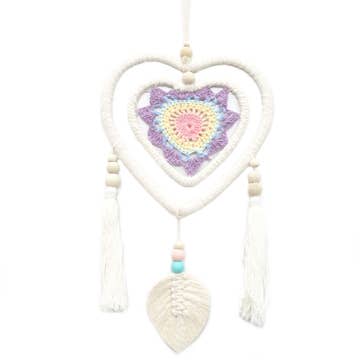 Crochet Macrame White Heart Dream Catcher Wall Dreamcatcher