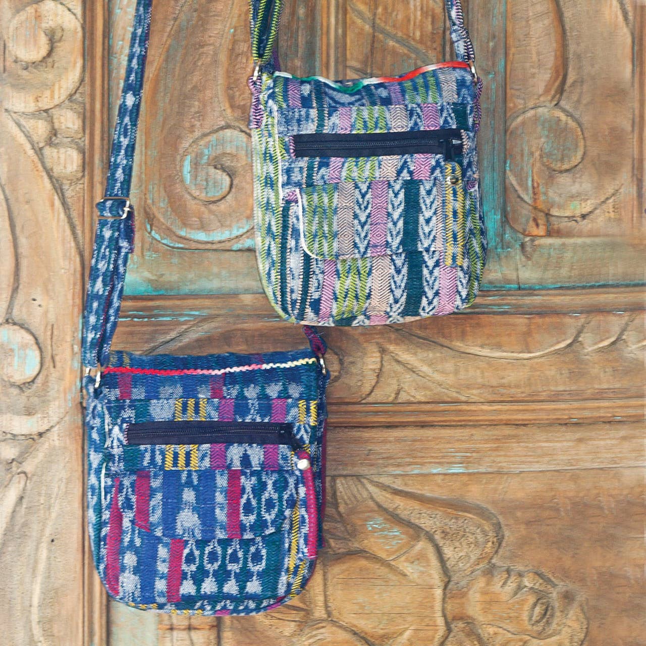 These floral shoulder pouches are crafted from recycled fabric from traditional Mayan blouses from the Chichicastenango region of Guatemala. With rich, colorful flowers, these bags are truly unique and eye-catching. Each bag features a contrasting Corte fabric strap, a fully cotton-lined main compartment, with another zip pocket underneath the buttoned flap closure. The Chichi Shoulder Pouch is handmade in a fair trade workshop in Guatemala.