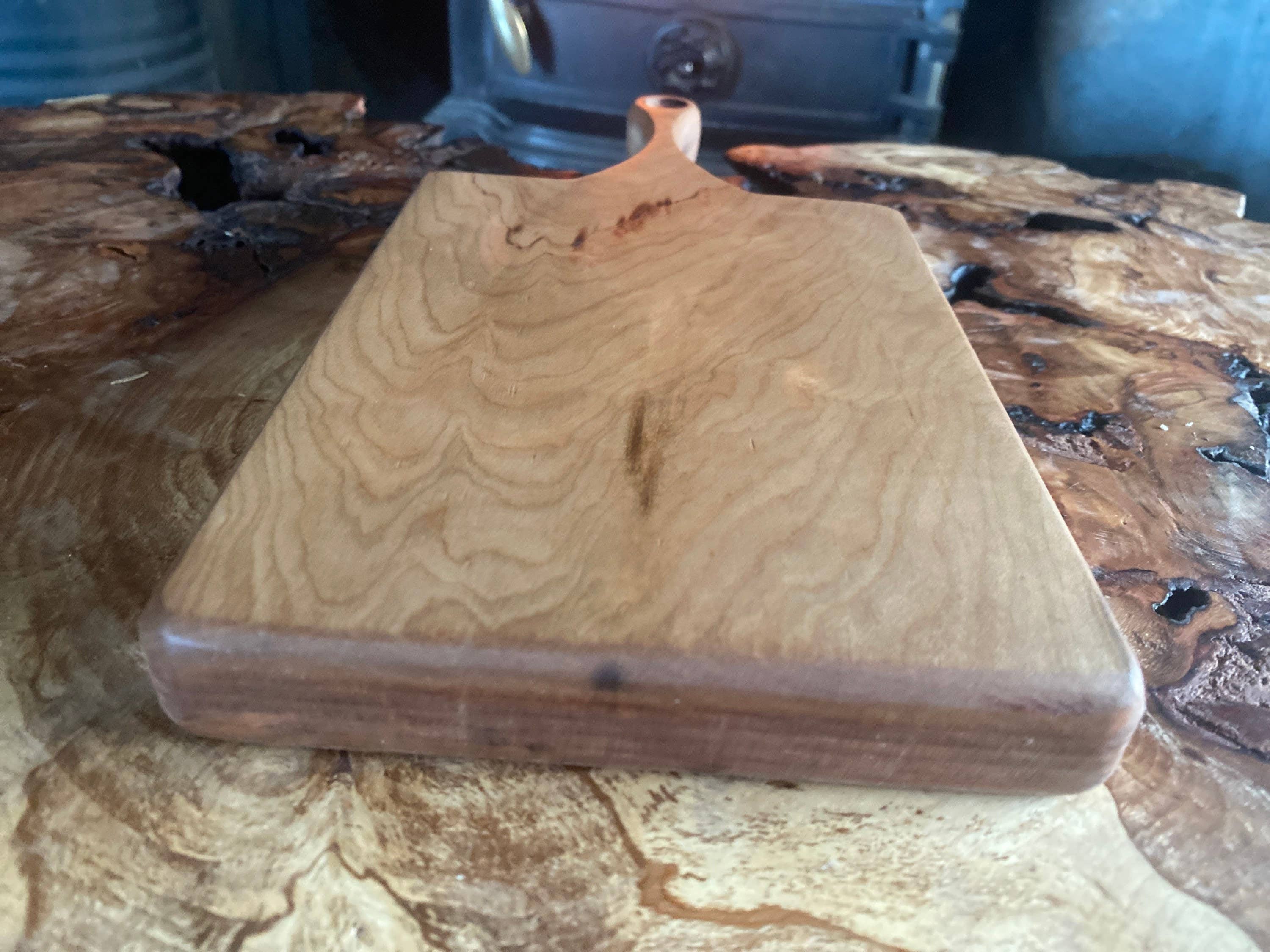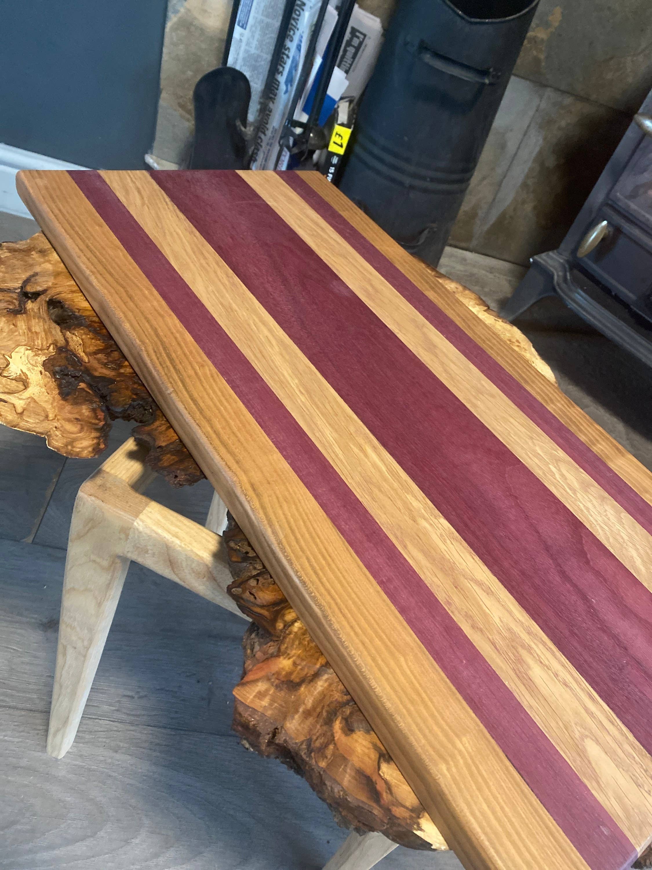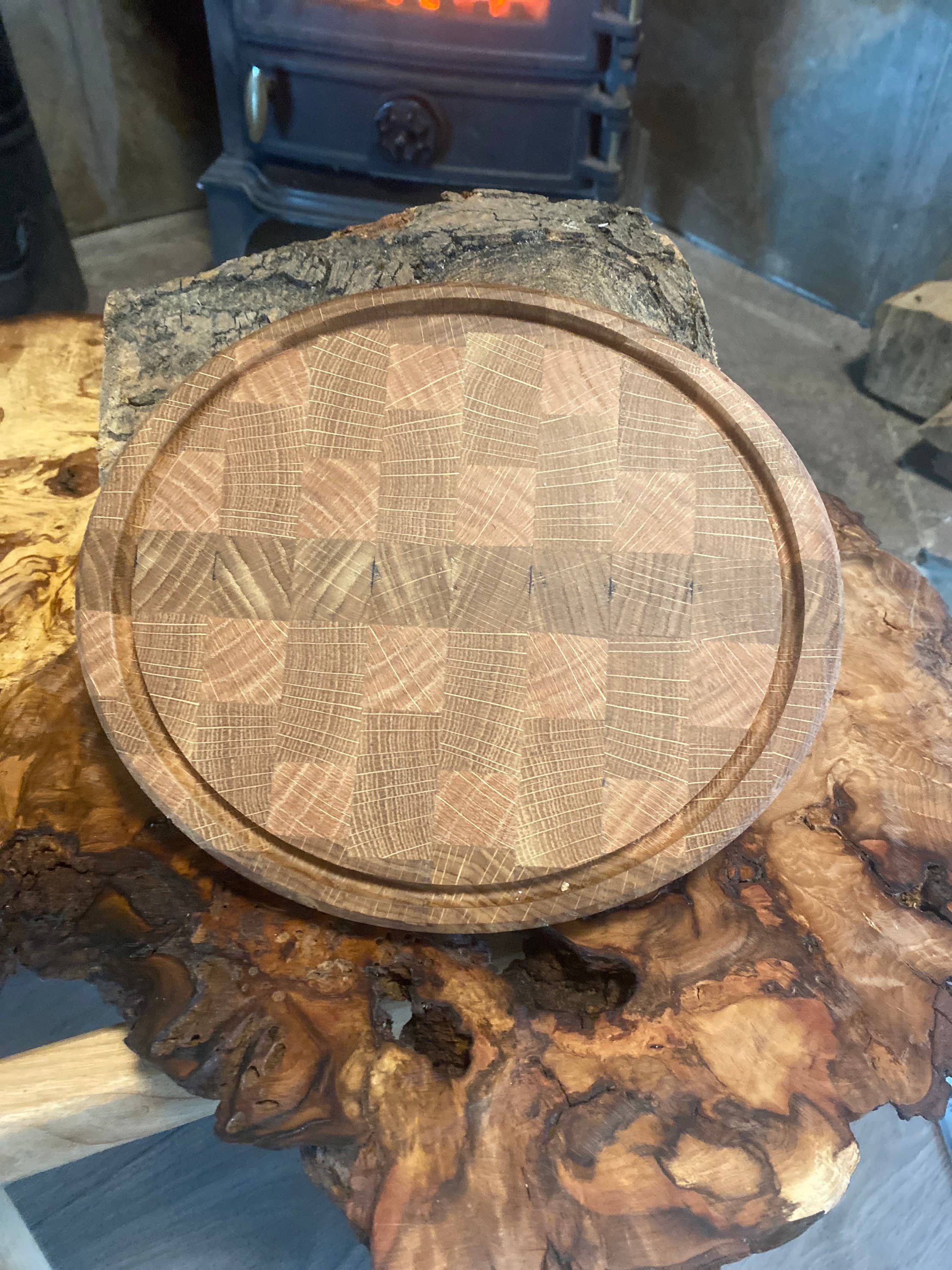 Introducing our exquisite End Grain Board, a harmonious blend of Oak, Guatemala Beech, Spalted Beech, and Cherry wood. Crafted with precision and care, this unique combination of woods creates a visually stunning pattern that is both durable and functional. Measuring 22cm in length, 20cm in width, and 2.5cm thick, this end grain board is perfectly sized for a variety of cutting and serving tasks. The recessed handle ensures easy lifting and transport, adding convenience to its exceptional beauty. Each board is meticulously crafted to highlight the natural colors, grain patterns, and unique characteristics of the wood species used. The end grain construction provides a durable cutting surface that is gentle on knives, making it ideal for everyday use in the kitchen. To enhance the longevity and beauty of the board, we finish it with a luxurious blend of mineral oil and 100% beeswax. This premium finish not only brings out the rich colors and grain patterns of the wood
