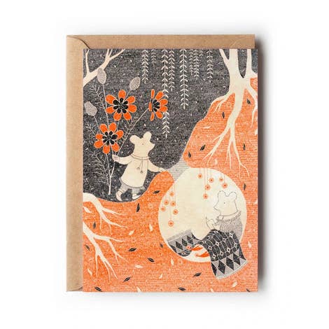 • Each card comes with a white envelope • Cards are blank inside • High quality printing with pigment-based ink on sturdy, 60lb matte paper • Each card is packaged in a clear sleeve for protection • Cards are a USA standard 5"x7" size (which can be framed with a standard size frame!) The perfect greeting card for letting a loved one know they're thought of. Whether they're facing a difficult time or are just missed, send a sweet note of empathy and encouragement with this card. Features two bunnies longing to be reunited in a sweet sunset scene with blooming yellow roses and a peaceful little waterfall. • Cards are made from high quality reproductions of original illustrations by Shannon Kuguenko • All designs are created & printed, from start to finish, at the artist's studio • All images are ©Kuguenko Illustration and may not be reproduced for any purpose without written consent from the artist, before and after purchase