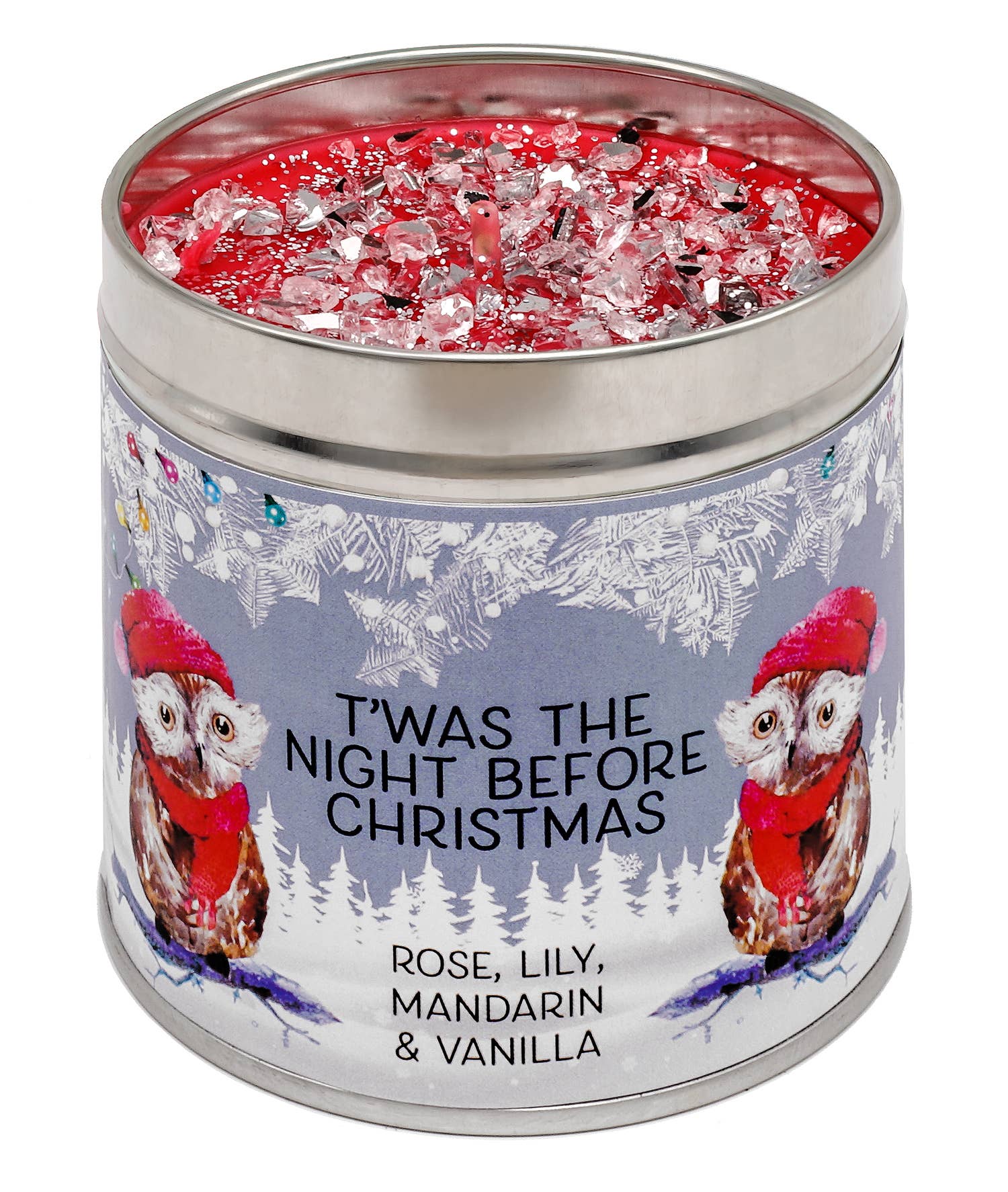 Fragrance – Basil, Lavender and Vanilla. Our stunningly cute "Spirit of Christmas' designer candles offer an impressive 50 hour of burn time. Choose your favourite illustration or fragrance to give to someone special at Christmas or maybe keep for yourself. The candles come with a variety of different coloured wax and are full of fragrance with our signature sparkly topping.