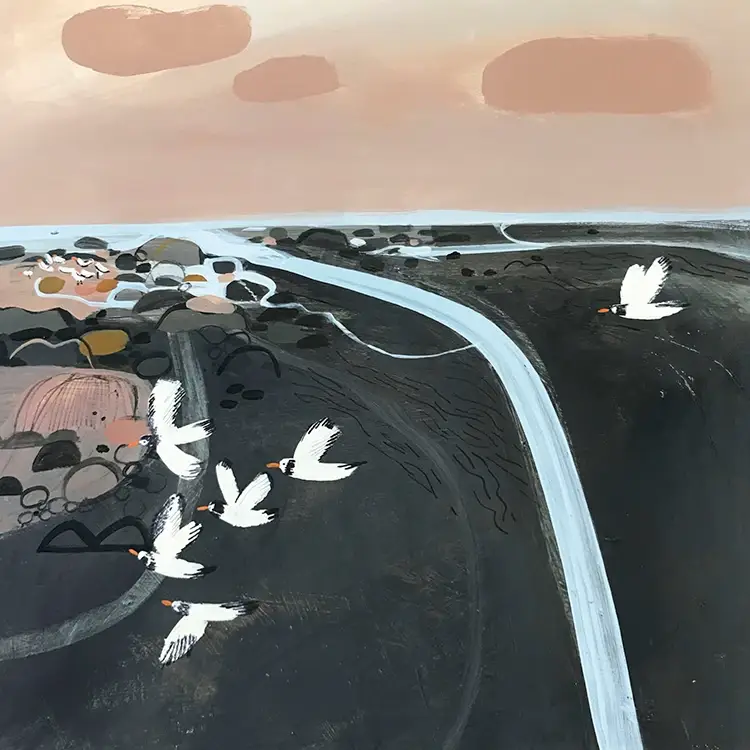 A Paper Bird Bookmark Card. Janine Burrows is a painter and illustrator with over 30 years of experience in various creative roles. Originally from a surface pattern/printed textile background, painting is where her heart is. Inspired by coast and countryside, allotments and gardens, Janine's distinctive, pared back style and sensitive palette seem to almost effortlessly capture the the different qualities of these places. Her cards are firm favourites for us and will be strong additions to your collections. Our cards are designed and printed in the UK on robust, subtly textured 350gsm board that can withstand naked or eco packing. We use translucent paper bands to hold the cards and Kraft envelopes together. All materials used are sustainable. Size 150x150mm