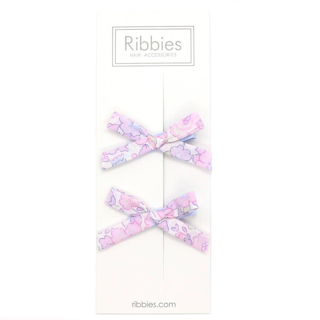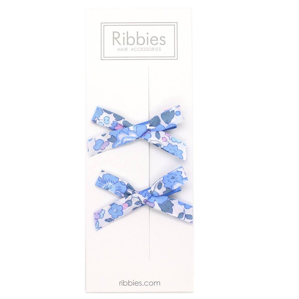This set of 3 Liberty of London ribbon hair bows are bright and colorful! Comes on a Ribbies headcard in clear bag packaging. Great to give as a gift! All bows are on alligator clips with no slip grips.