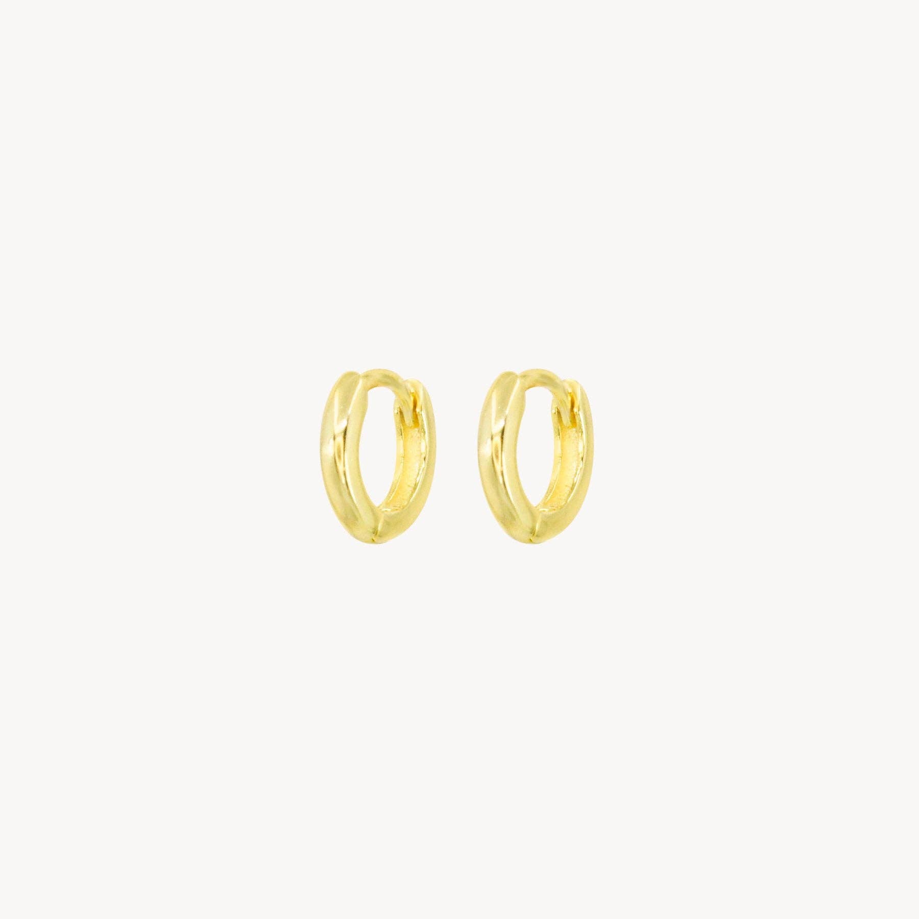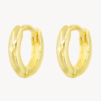 A delicate gold band wraps around the ear and sits close to the lobe. Each hoop is then finished with tiny faux pearls studded on the front side. The perfect everyday piece, these earrings are great for adding to any gold jewellery wearer's daily rotation. Lightweight to wear all day, these hoops fasten via a hinge lever and would make the sweetest gift for a loved one on their birthday. Dimensions outer width - 11mm inner width - 8mm height 10mm x depth 2mm Made from 14ct gold plated brass, acrylic pearl
