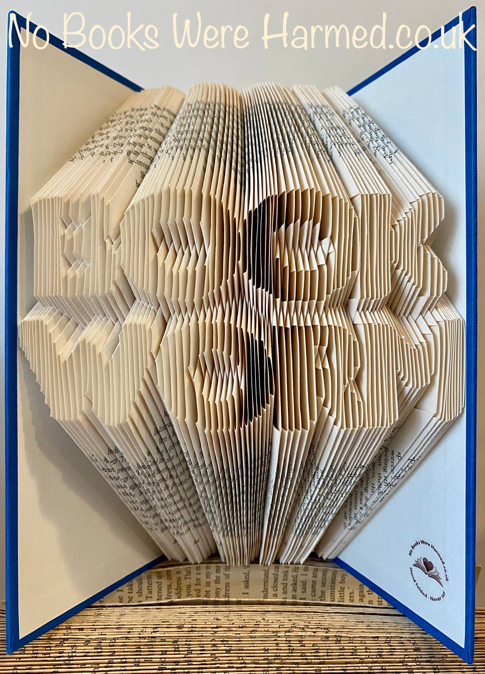 ✅ Hand folded ✅ Never cut ✅ Designer made ✅ Book art Photos shown are of past pieces, most of which have gone to their new forever homes. I create this art in my home studio in the north of Scotland, carefully hand folding the pages of reclaimed pre-owned & vintage books. Each sculpture is unique and exact colours and final appearances naturally vary from book to book. • If you can say it with flowers, they'll remember it with a book •