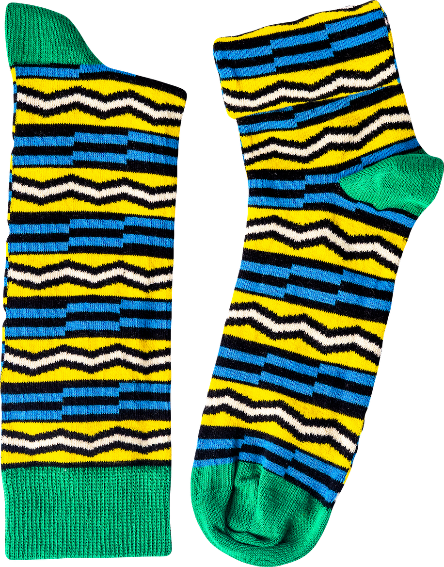 Premium designer cotton socks sent your way from Ghana. "Baafira" is a Hausa word meaning "observe", its slang meaning 'lay low'. It is used to encourage successful people to not show-off and be humble. Baafira is the title of many Ghanaian songs by Stonewboy, Sarkodie, and others. This design was inspired by traditional Mudcloth designs. The socks are 90% Cotton, 8% Polyamide, and 2% Elastan.
