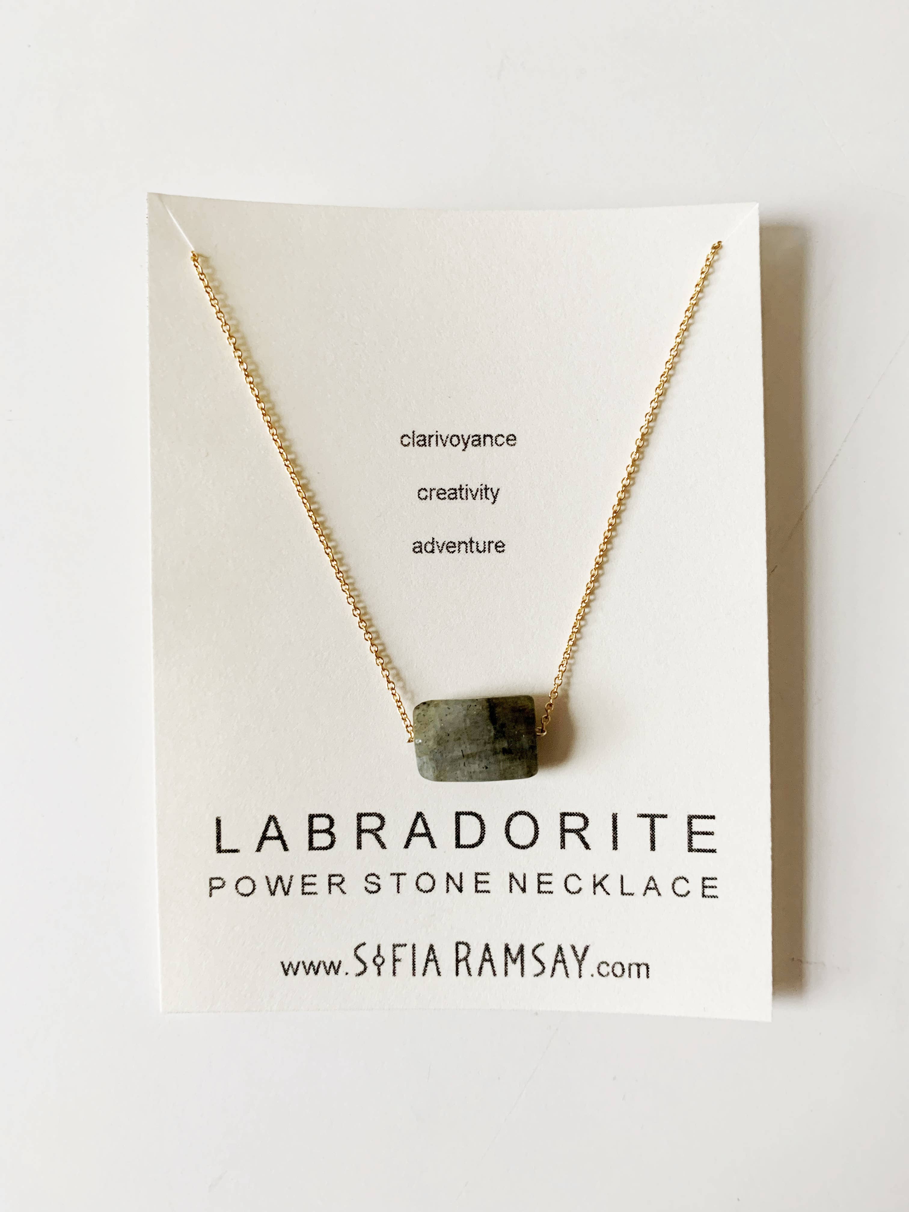 GROWTH • OPPORTUNITY • COMFORT Green Aventurine is known as the stone of opportunity, especially for those who are lost. This soothing stone brings good luck and financial prosperity, but also and helps with personal growth. Break old habits, heal old wounds, move on and find your place in the universe with the aid of Green Aventurine. Genuine semiprecious stone hand-wired to a gold-filled chain. 16" with optional 2" extender chain. Handmade in Brooklyn, NY