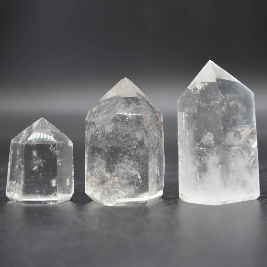 Clear Quartz Jumbo Point Size : 60 mm Approx weight : 35 grams Experience the pure energy of our Clear Quartz Jumbo Point, expertly hand-cut with 16 gleaming faces. Standing tall at 60 mm, this powerful crystal is revered for its ability to amplify energy, enhance clarity, and bring balance to your space. The multiple faces intensify its natural vibrations, making it ideal for meditation, chakra healing, or as a stunning centerpiece for your altar or home decor. Known as the “Master Healer,” Clear Quartz harmonizes with all chakras and intentions.