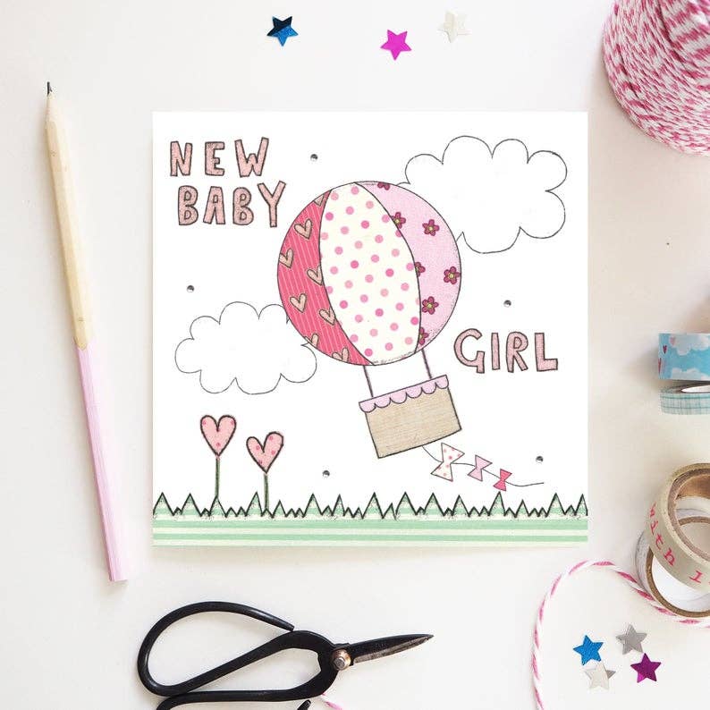 Each card has been hand illustrated by flossy using mono-printing and collage, before sending to print. All our cards are designed in our studio in Derbyshire and are printed in the UK. Every card comes with a kraft brown envelope which has an illustrated address sticker attached and are individually wrapped in a biodegradable cellophane bag. We have hand attached paper flowers and gems to the cards for that extra special touch! The card has been left blank for your own personal message.