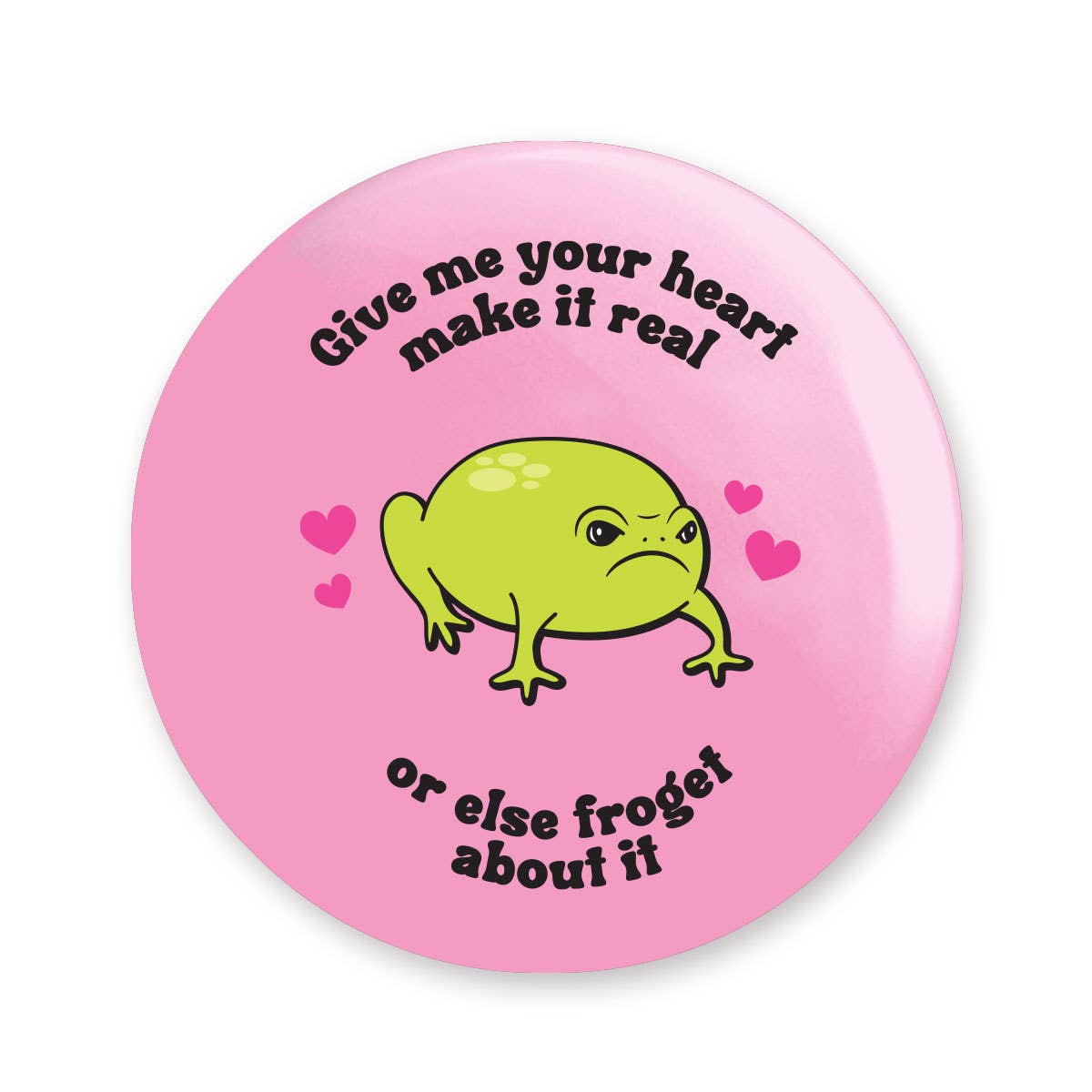 2.25" round pinback button. Hand pressed by me. No packaging.