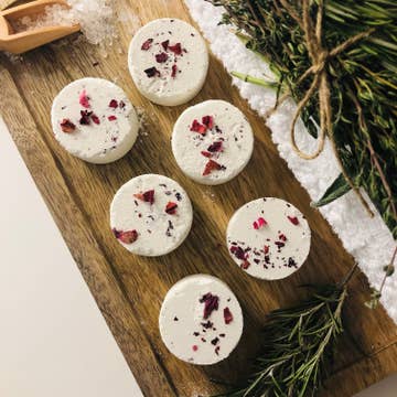 Essential Oil Blend: grapefruit bergamot, orange This blend will brighten and refresh your mind in the first hours of the morning. Perfect for the early riser and morning person in your life (or yourself, of course). Why just have a shower when you can pamper your entire body with a therapeutic shower experience? Our luscious shower steamers make your everyday shower feel like a spa experience right in your own home! How to Enjoy: Place one steamer on the floor of the shower away from the drain where water can lightly get to it. This will allow the steamer to slowly dissolve so you can enjoy the essential oils for the duration of your shower. Pack of 10 Steamers Ingredients: Baking Soda, Citric Acid, Arrowroot Powder, Cream of Tartar, Witch Hazel, Essential Oil This is Jaden's personal favorite of the steamers!