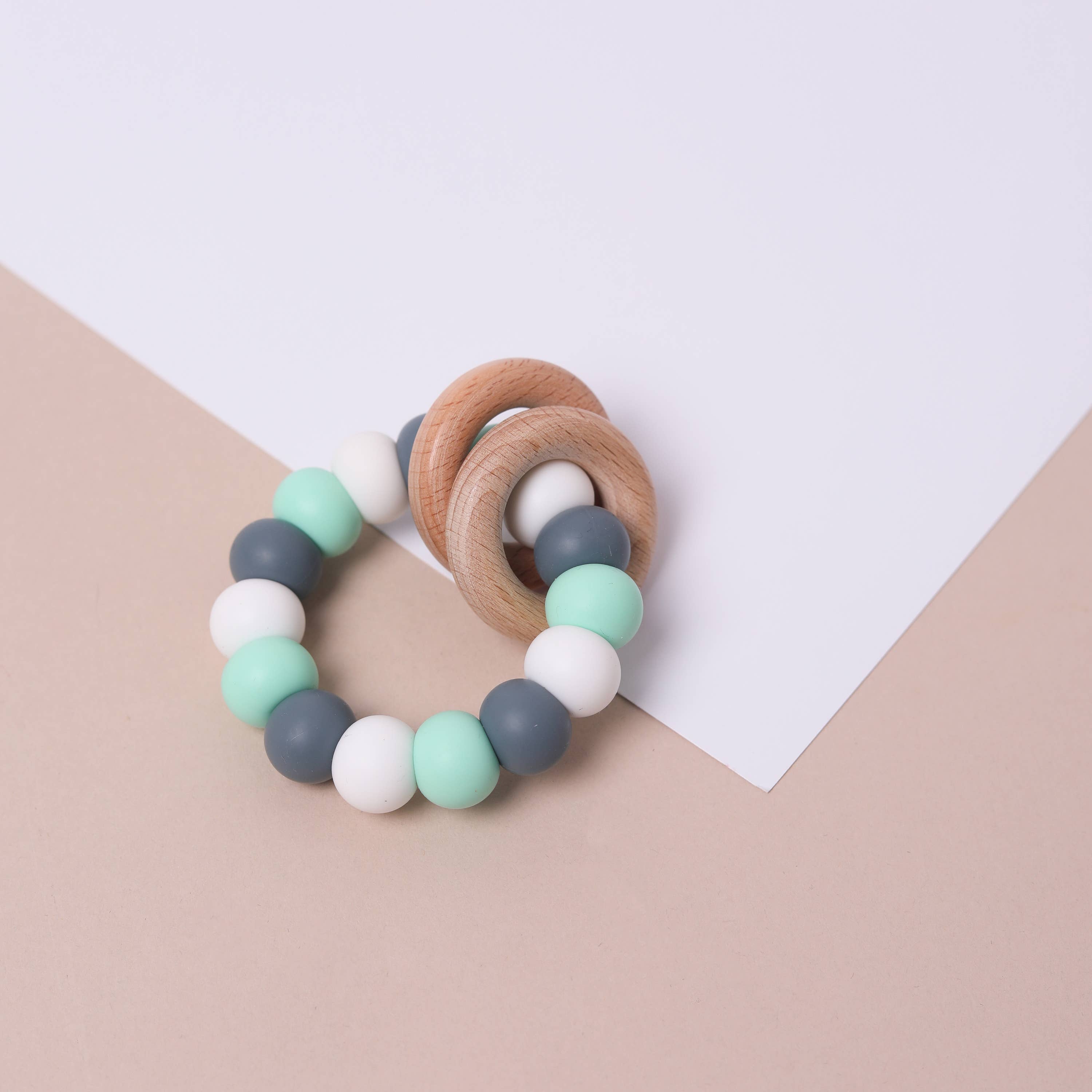 Handmade car tensioner with only wooden beads with beautiful crochet details, and a soft sounding bell! 🔔 Available in neutral base colors. So you're always in the right place when you need a maternity gift! 😉
