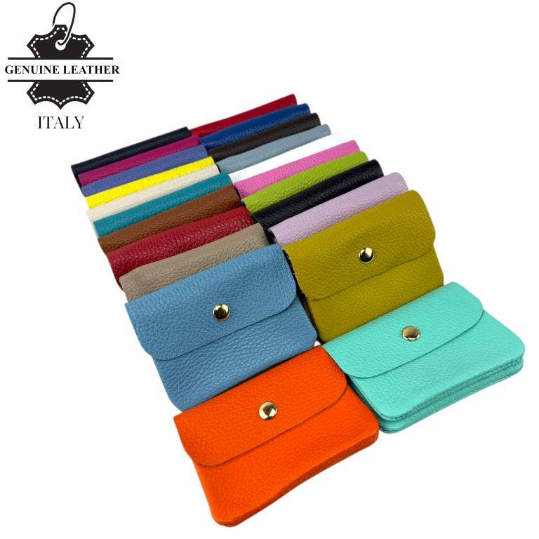 Italian leather purse with 3 compartments, magnetic flap and zip closure for Women Material: Cowhide. Main closure: Flap with button & Zipper. Interior: It has 3 compartments. One of them is with a zipper for coins. Dimensions (L x W x H): 11.50 x 2 x 9 cm. They are sold in 6-piece Multicolor Assortment Pack. Made in Italy.