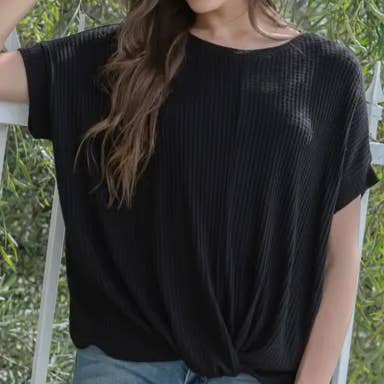 Elevate your everyday style with this chic Solid Back Ribbon Dolman Sleeve High Neck Top. Featuring a graceful high neckline and relaxed dolman sleeves for a flattering fit, these top offers effortless sophistication. The standout detail is the statement ribbon tie at the back, adding a feminine and modern twist to a classic silhouette. Made from soft, lightweight fabric, it's perfect for transitioning from work to weekend wear. Pair with tailored pants or denim for a versatile look your customers will love. solid back ribbon top, dolman sleeve blouse, high neck top wholesale, boutique women's tops, elegant ribbon tie blouse, office to weekend tops, faire new arrivals, trendy boutique clothing, wholesale chic tops, women's solid color blouse, stylish workwear top, feminine high neck top, versatile casual top, wholesale modern tops, boutique wardrobe essentials