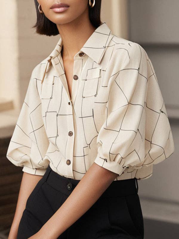 Long Sleeves Loose Asymmetric Printed Split-Joint Lapel Blouses&Shirts Tops