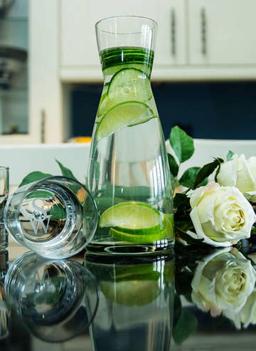 Our half carafe is perfect for pouring. But don’t stop there — its eclectic, bubbled ridge feature makes for an untraditional vessel to store everything from kitchen utensils to dried pasta to colorful bouquets. Switch it up, or get both for endless possibilities. Due to the handmade nature of our products, each is a work of art; a one-of-a-kind piece with slight variations in color, texture and shape. Our glassware is hand blown in Marrakesh and made of recycled glass. Sustainability never looked so good. Details: Available in tinted Crystal Clear Blue. Size: __________ Care Guide: Dishwasher and Microwave Safe