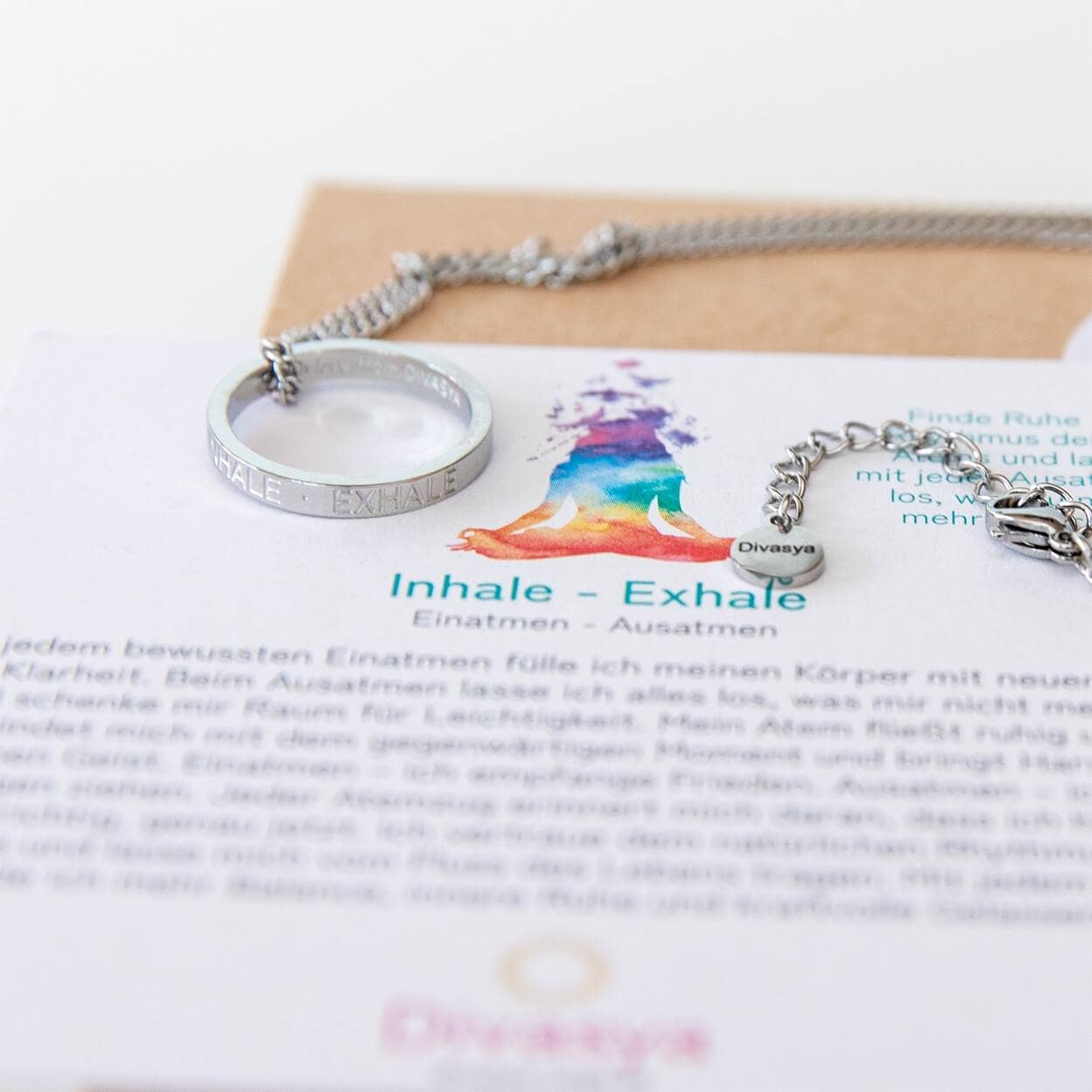 Spiritual Necklace | Mantra: Om Mani Padme Hum Carry the power of the mantra close to you – with our fine gold-plated necklace with ring pendant made of high-quality stainless steel. This elegant spiritual necklace combines minimalist design with deep meaning. The round pendant with a diameter of 2.2 cm features the powerful engraving "Om Mani Padme Hum" – a meaningful mantra for compassion, mindfulness, and inner wisdom. Mantra Necklace made of Stainless Steel – Your Companion for Yoga, Meditation, and Everyday Life Product details of this Mantra Necklace: - High-quality, gold-plated stainless steel - Round pendant with laser engraving: "Om Mani Padme Hum" - Pendant diameter: 2.2 cm - Chain length: 45 cm + 5 cm extension for flexible fit - Personal mantra for mindfulness and inner balance - Hypoallergenic, waterproof, and durable - Expressive spiritual jewelry and stylish yoga jewelry