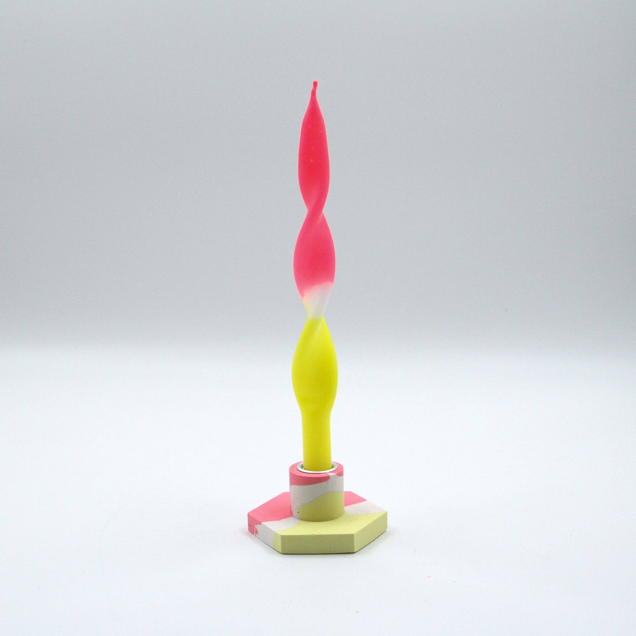 Handmade hexagon Holder Citrus Flamingo is made in the colors pink, white and yellow. Each item was created by Rooz in a variety of moulds, then sanded by hand, and lastly sealed with a water retarding sealer to protect stains and water damage. Dimensions: 8 cm x 8 cm x 4 cm. Material: Jesmonite Care: Clean with a soft damp cloth and gentle soap. It is advised to clean off all strong contaminants as soon as possible All items are individually mixed, cast, sanded and sealed in our studio in Vlissingen. Please allow for minor irregularities.