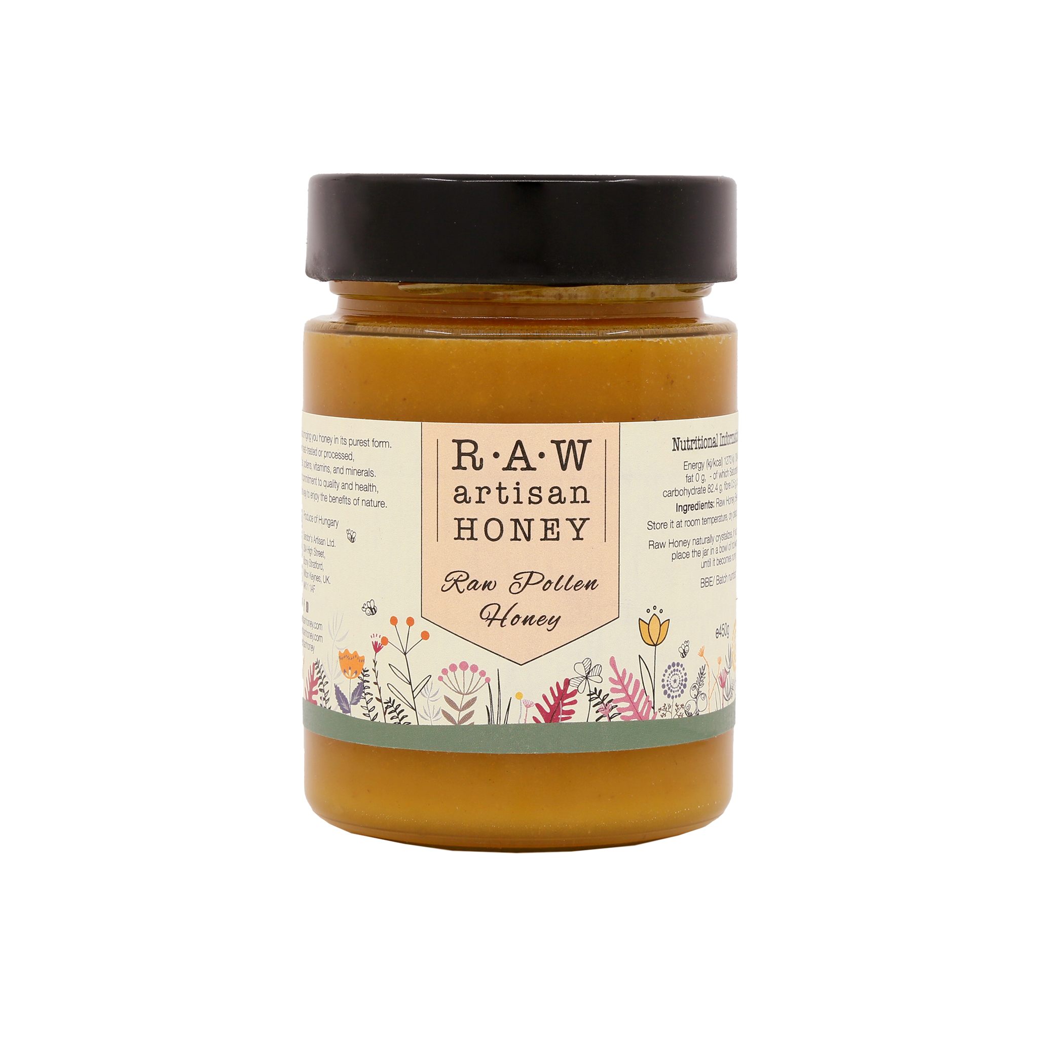 SKU: orlando-16oz Made in United States Diet: Kosher and Organic Ingredients: honey, pollen Shelf life: Over 36 months Storage: Shelf-stable Production: Locally sourced, No added hormones, No added nitrates or nitrites, No antibiotics, No artificial sweeteners, No preservativesand Non-GMO Weight: 453.59 g (1 lb) Dimensions: 12.7 x 7.6 x 2.5 cm (5 x 3 x 1 in)
