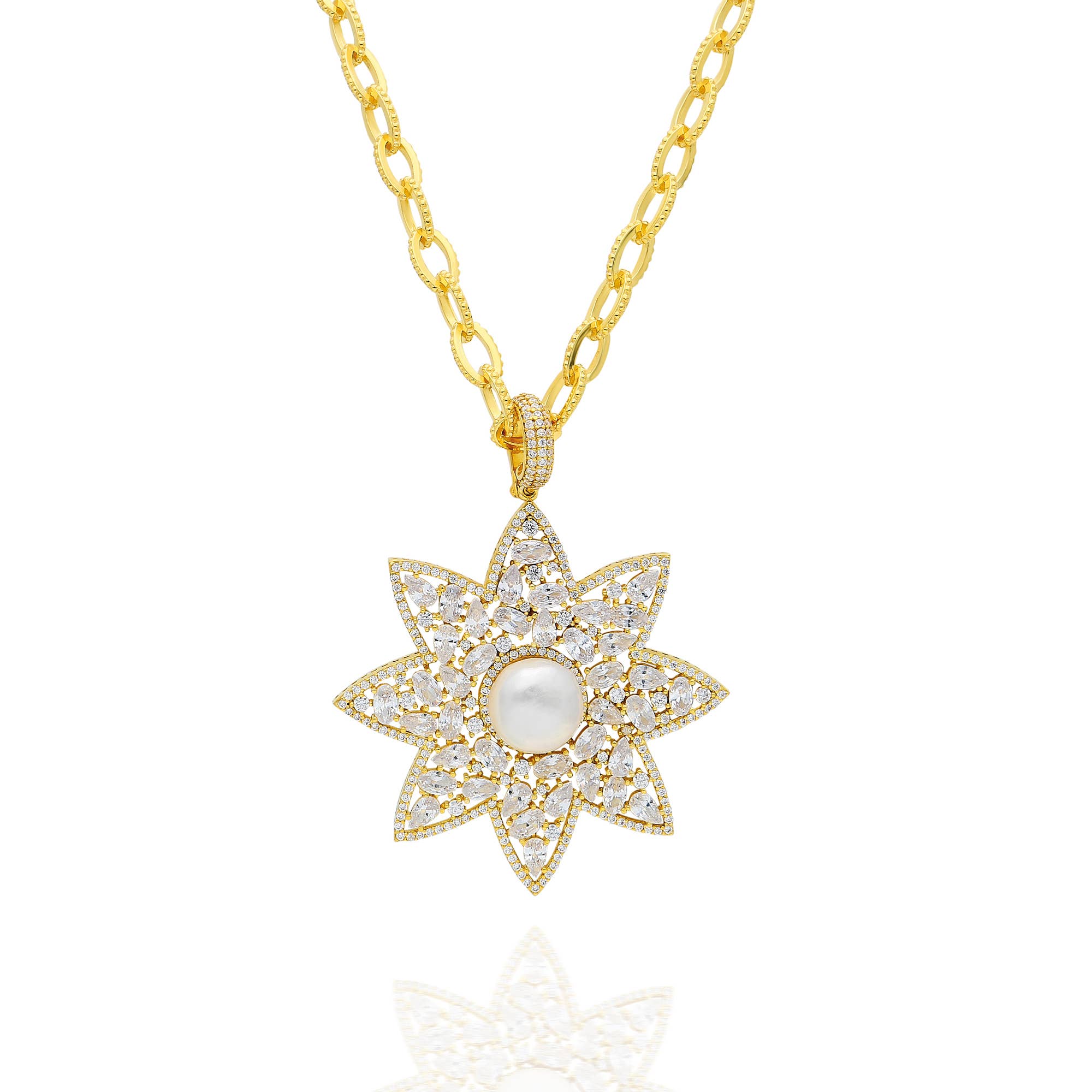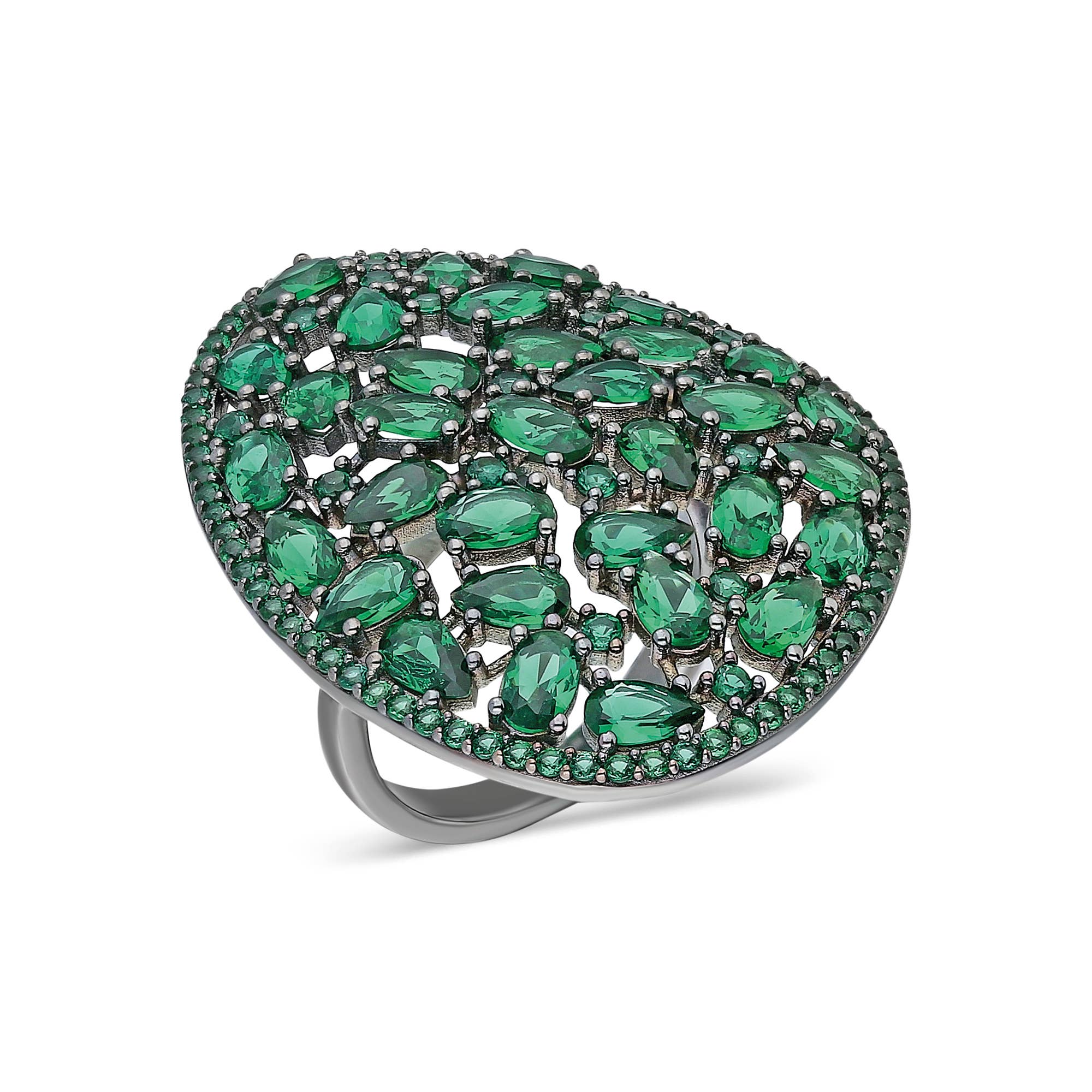 925 Sterling Silver with Hand-Setted High Quality CZ Stones, Bumped Rococo Bean Ring Yellow Gold Plated