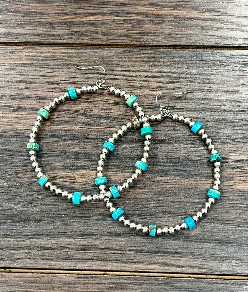 Wholesale 724503, Handmade 25mm Hoop, 6mm Copper Navajo Bead Earrings