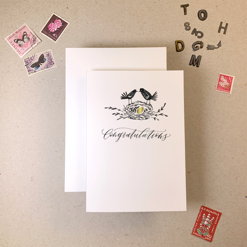There are no words so sending love - elegant, stylish cards with Imogen's modern calligraphy and the occasional cheeky profanity brought to life in black letterpress 350gsm fsc paper stock with matching envelope.