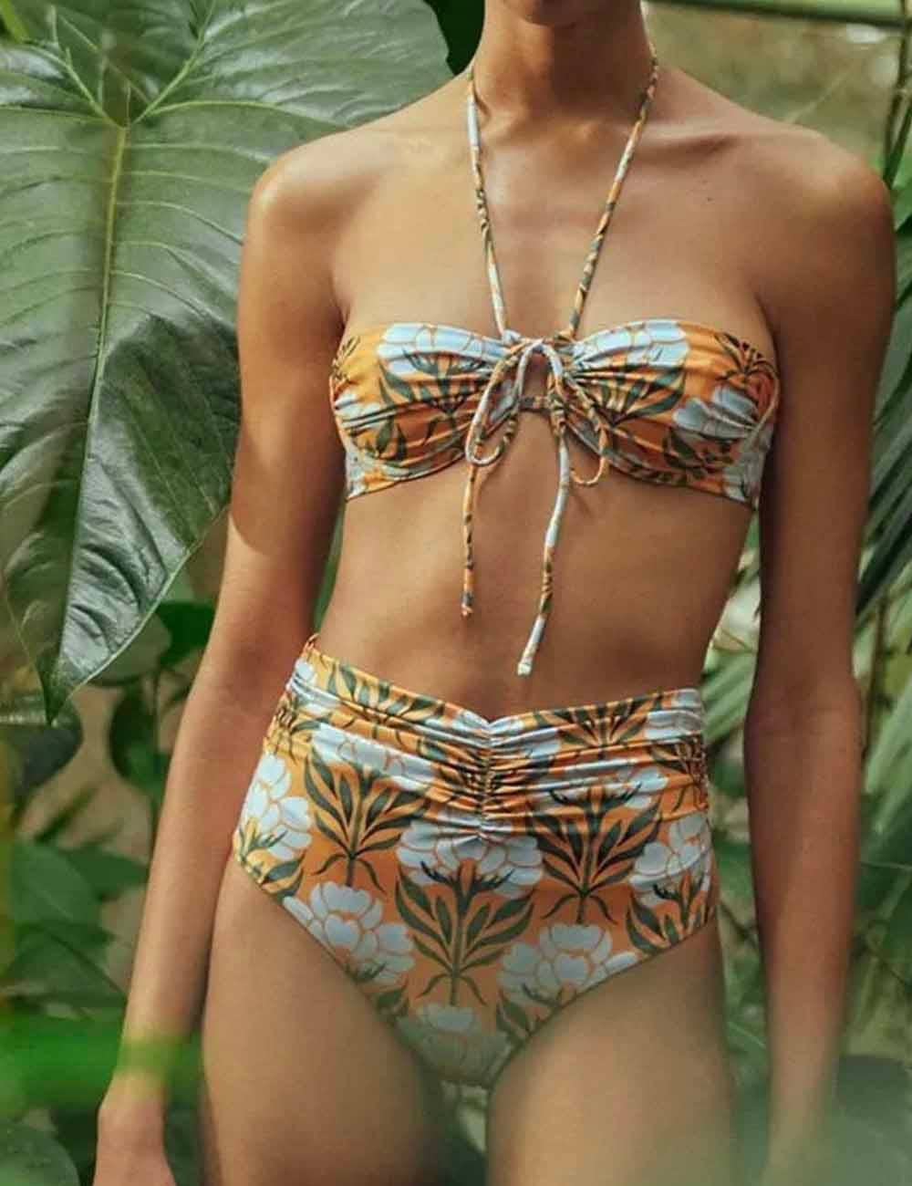 2 Piece Flower Print Bikini Swimsuit Set