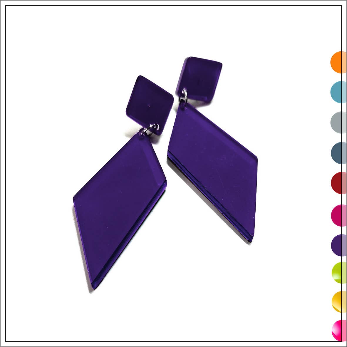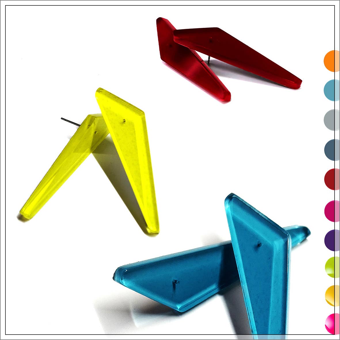 KYRA post & drop earrings. Welcome to the colorful world of LUSH GLOW, where each handcrafted piece of jewelry made of hand-painted Acrylic is a celebration of color. Min of order mix of 4 in any colors Dimensions : H 3,5 cm- W. - 2 cm Made of high-end Acrylic hand-polished with a special attention to every single detail. Each piece of jewelry is carefully handcrafted in our studio in Paris, France.
