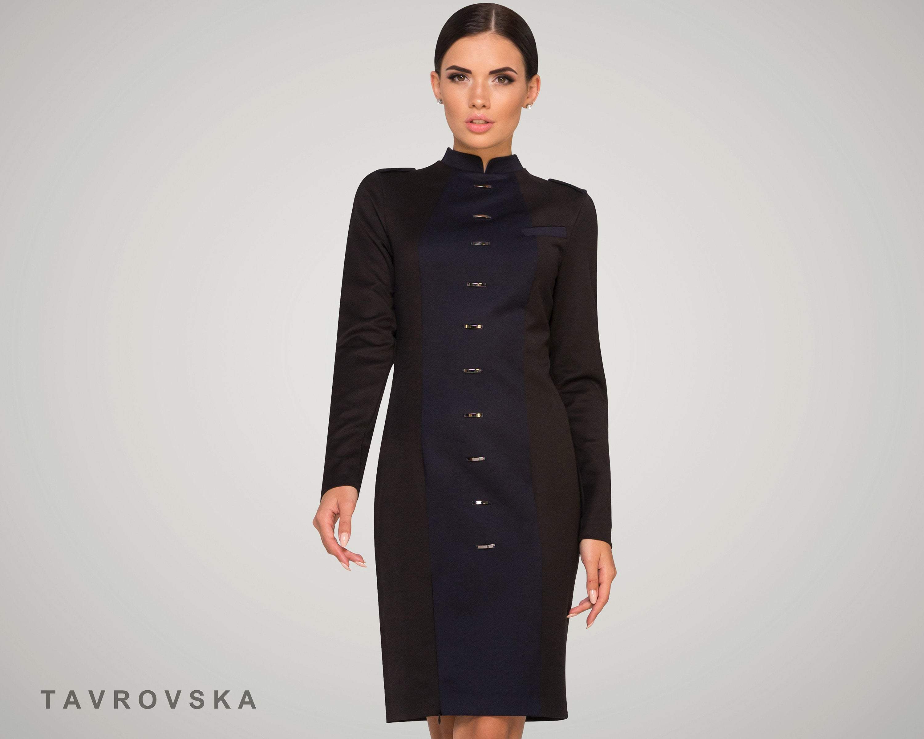 Black high neck midi pencil dress