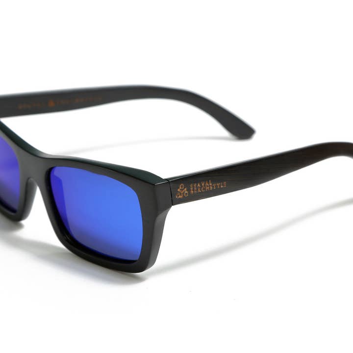 Wooden sunglasses with polarized lenses.
