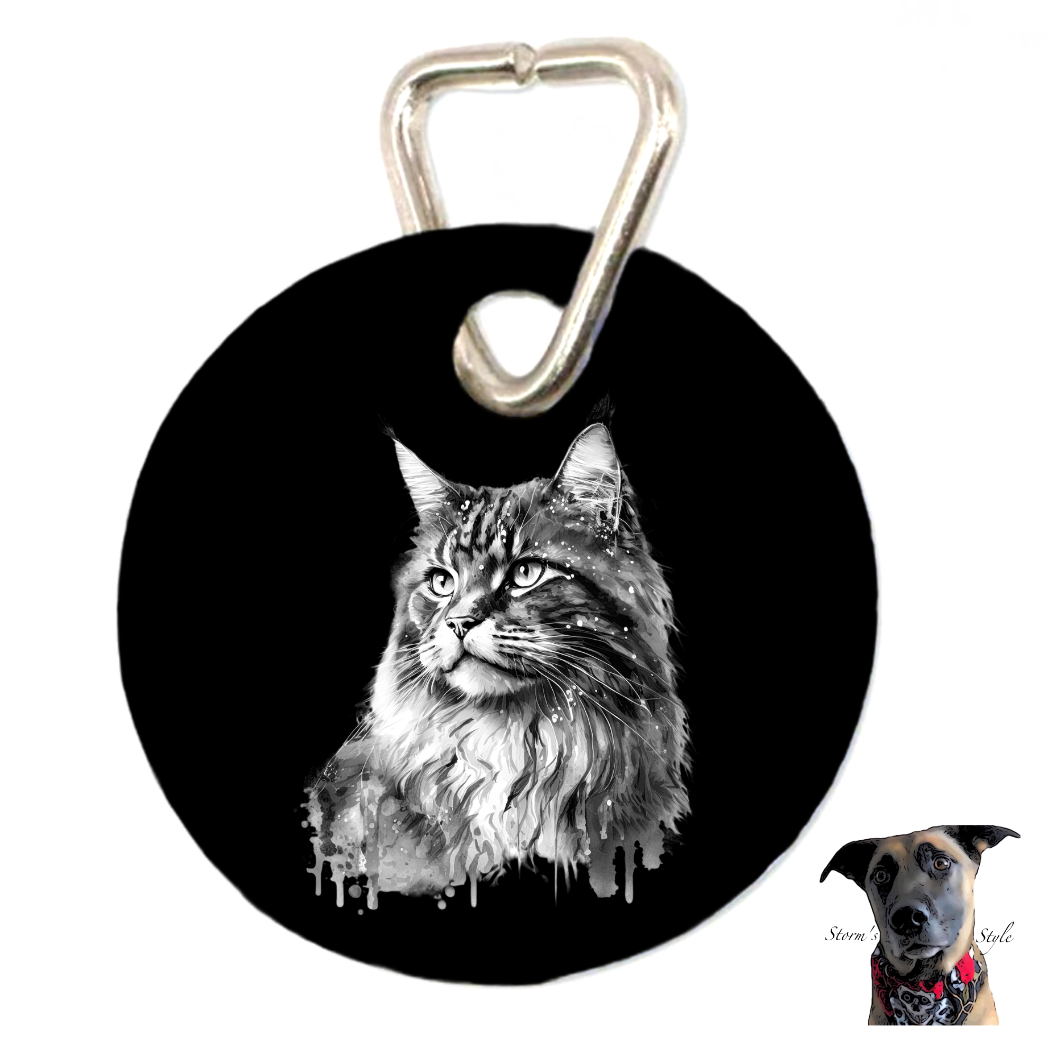 1.25" round Metal Pet tag. Sassy and Fun! Triangle clasp included. They come packaged in a resealable cello bag to keep them protected!