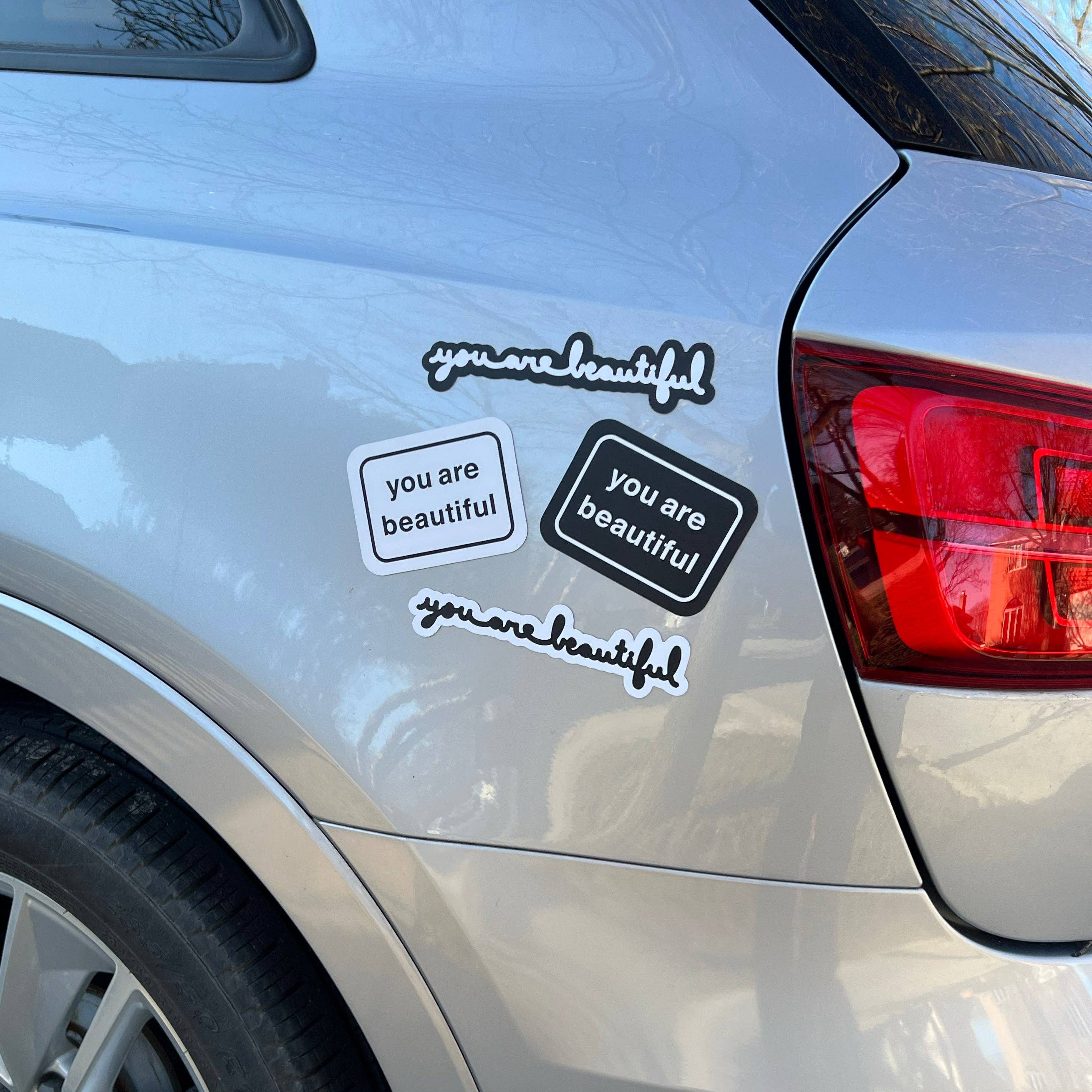 Share the message, and share time together! Each card has a unique hand drawn phrase of positivity. (All phrases are pulled from our Daily Calendar). These are itty bitty mini playing cards! They cards are 1.5" x 2", which are the same size as our classic sticker! What's Included: 52 cards all 4 suits, each card has a unique phrase. 2 "sticker" cards (get it, joker...sticker?) 1 "i am beautiful" Card 1 "we are beautiful" Card 1 mini silver box Printed in China, packaged in Chicago, & played by you.