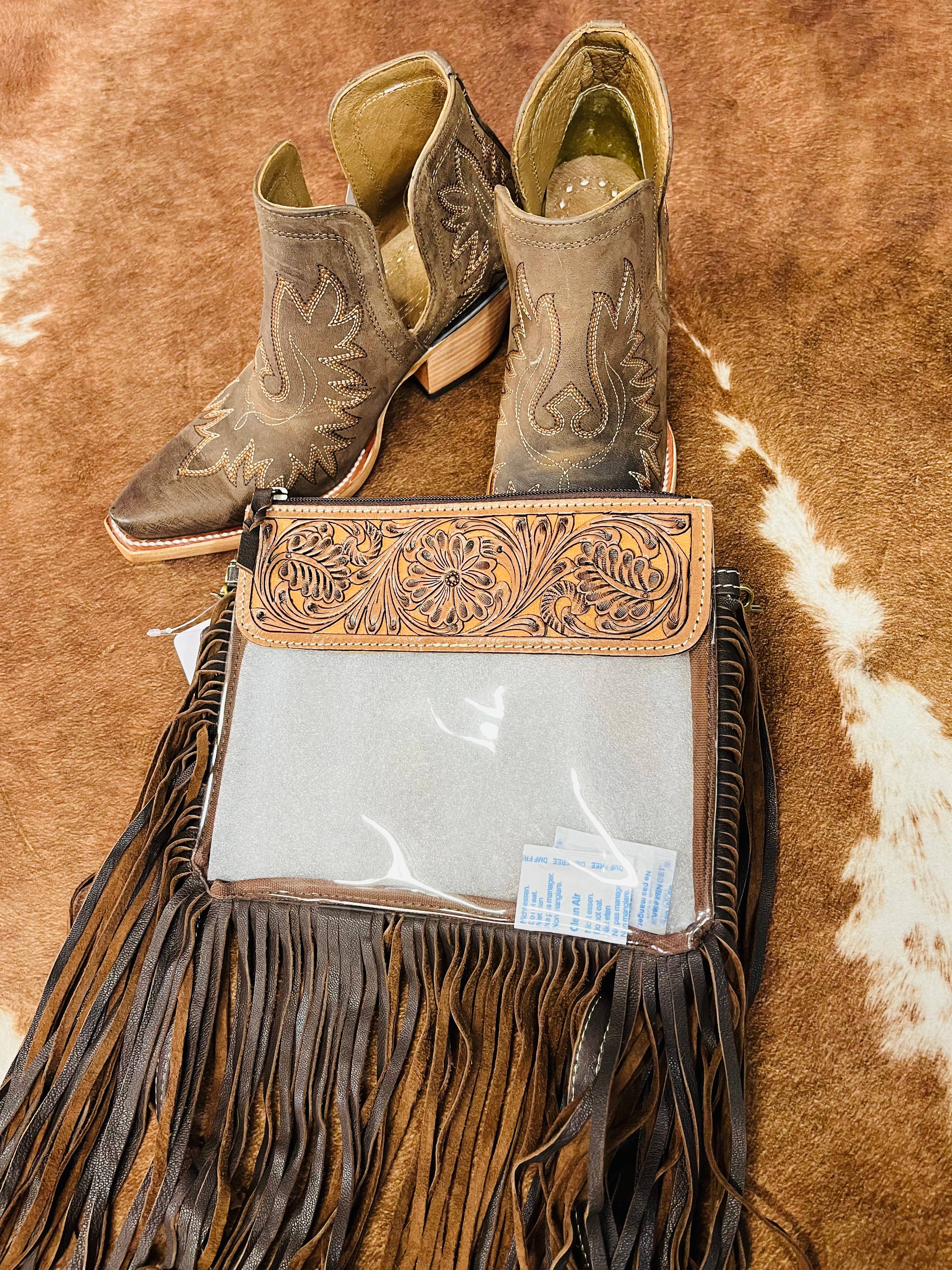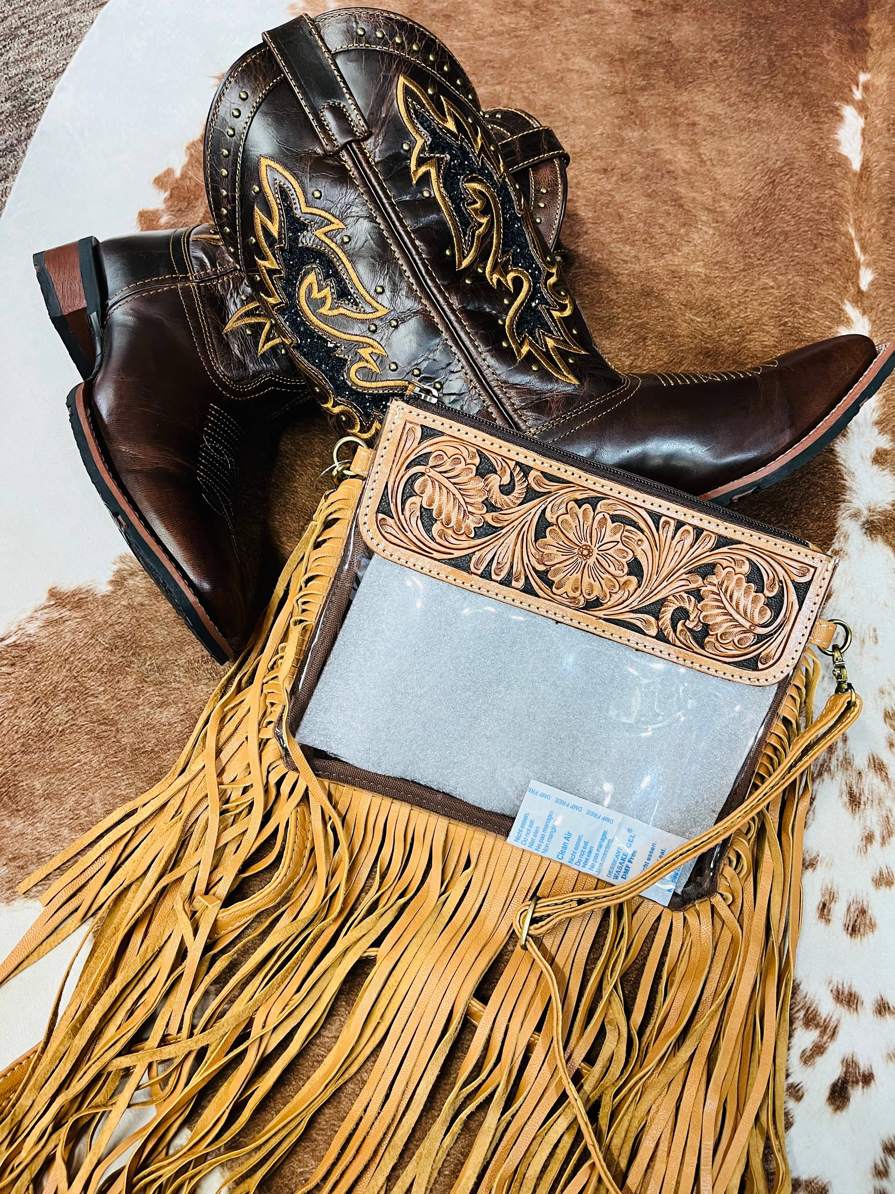 Hand Tooled Clear Purse Crossbody - Concert Game Day Stadium
