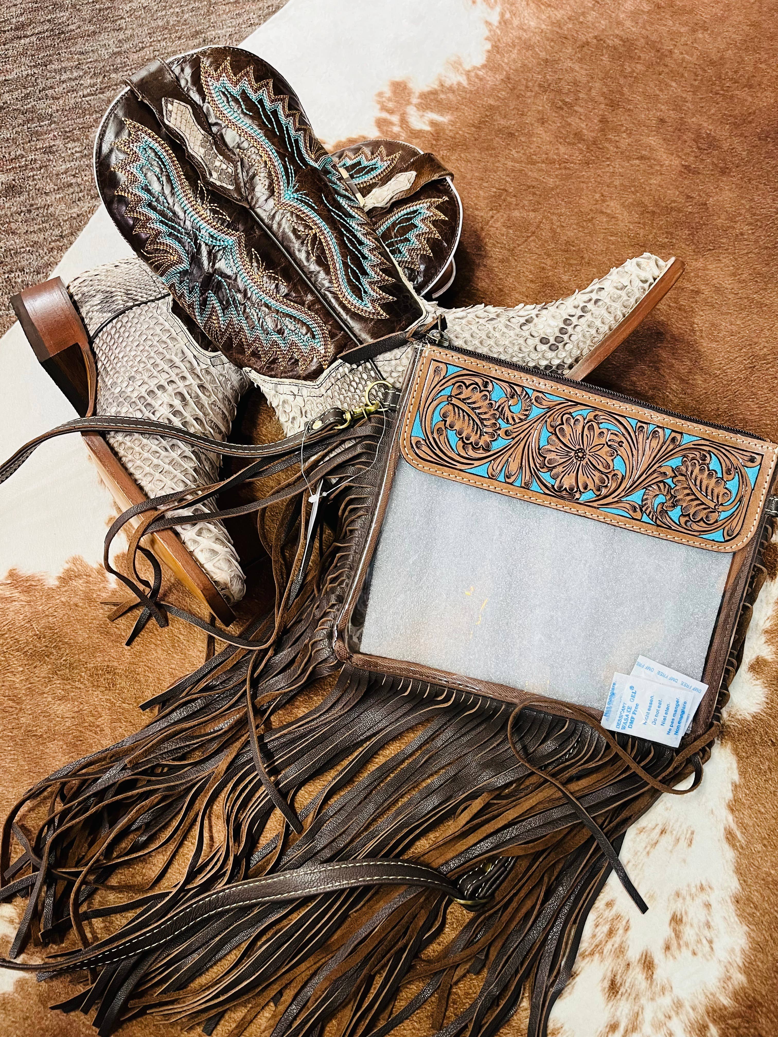 Finally some cute stadium/ venue approved clear crossbody bags!!! - genuine hair-on cowhide - clear thick vinyl - secure snap closure - Adjustable crossbody strap - 9.5" W x 8.5" H - meets venue clear bag policy/ regulations WHITE LEATHER/ BLACK BACKGROUND TAN LEATHER/ BROWN BACKGROUND BROWN LEATHER/ TAN BACKGROUND BROWN LEATHER/ TURQUOISE BACKGROUND