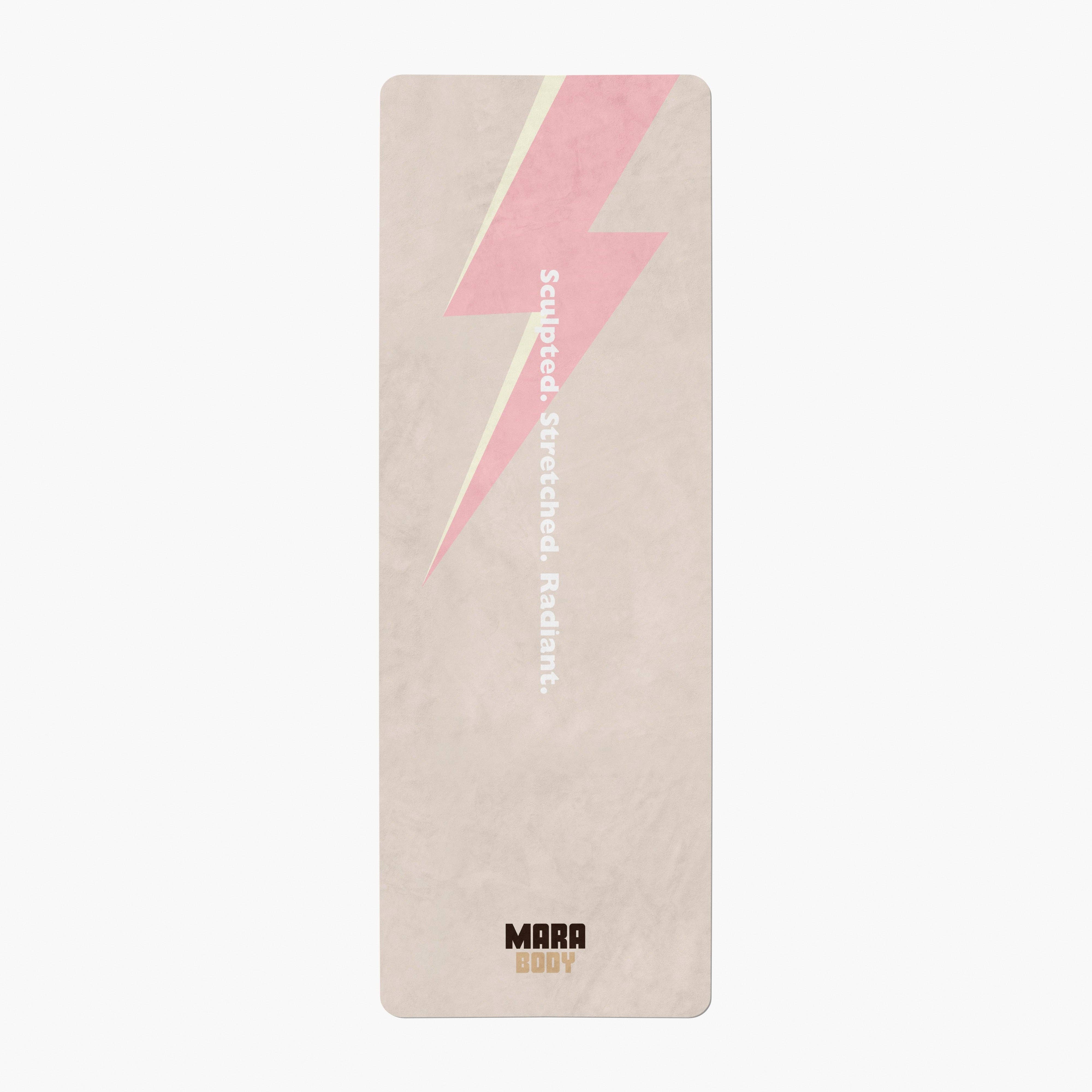 Beige and Pink Wellness Yoga Rug Mat with Motivational Quote. Always Out. Always Ready. Skip the roll - keep the goal. Why you'll love it: * Chic and versatile, blends seamlessly with most home décor styles. * 2 in 1 design - towel + mat. No need for yoga towel during hot yoga & hot pilates classes. * Ultra-absorbent. Fast dry. Thick. Soft and cosy to a skin touch compare to other mats. * Enhanced grip technology ( see use & care section ) * Water based non-toxic ink. Free from toxic glue, lead and phthalates. No toxic odour. * Eco-friendly. Ethically produced. * Machine washable. Easy to clean ( see use & care section ) * Designed in Toronto, Canada. Dimensions + Materials: * 178cm x 61cm x 3.5mm x 2.5kg * Recycled microfiber suede top + biodegradable natural tree rubber base. * GRS Certified; SGS Certified (phthalates - pass; lead - pass); REACH Certified. Life is too short for boring yoga mats ;) MARA BODY Eco-friendly Machine Washable Yoga Rug Mat