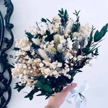 These bouquets have been carefully picked at just the right time to maintain their rich deep color. The classic Lavender bouquet with the most fragrance, longer stems, and grayer in color than the English. You will love these fragrant bouquets, grown right here on our farm. We use the buds from the French varieties in our products because of the strong oil content. These dried bouquets will last indefinitely. They average 18-20 inches in length. *We now offer the bouquets wrapped in paper as an option. Please confirm if you'd like the bouquets with or without the wrapping*