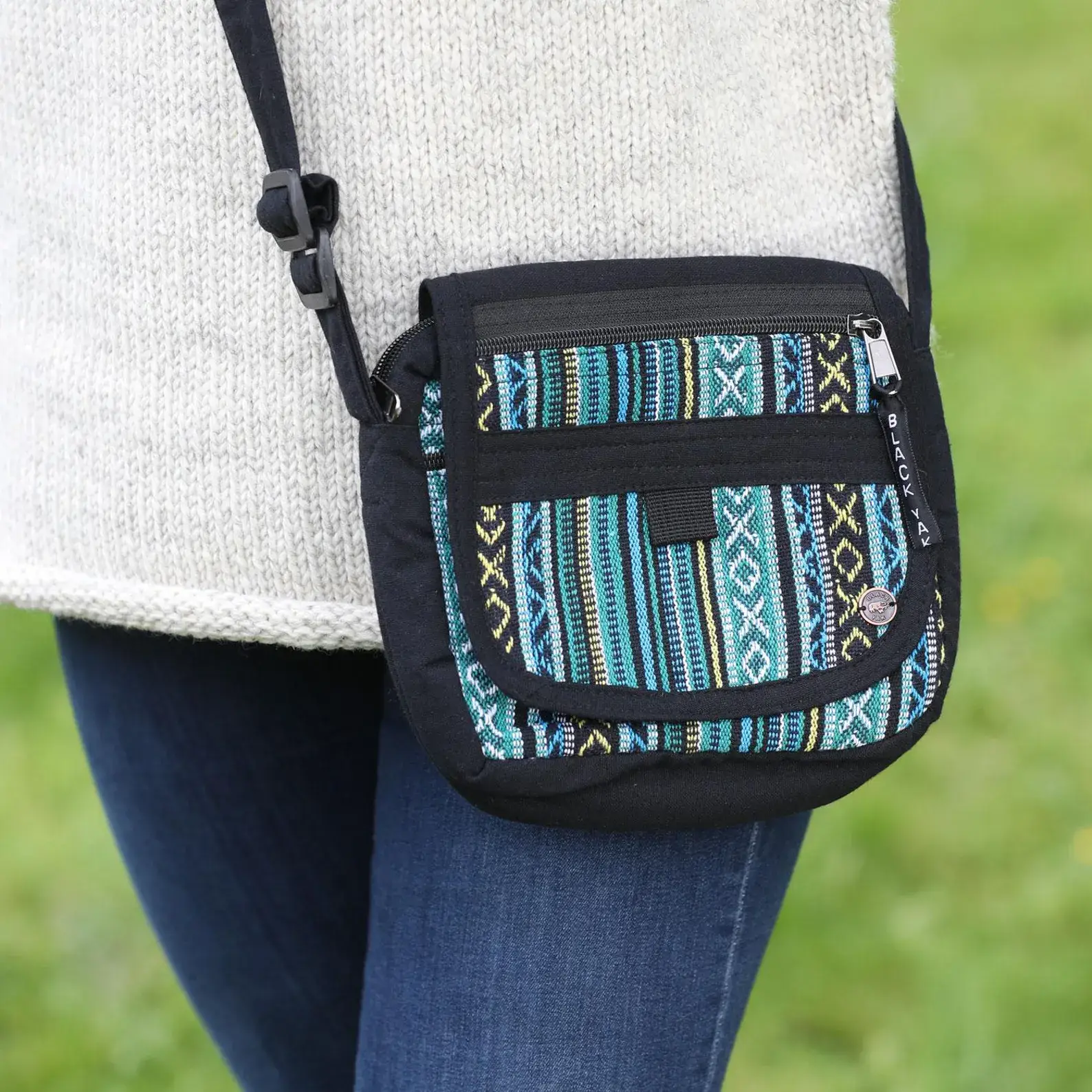 A lightweight stonewashed bag that is the perfect size for essentials - 'phone, purse and lippy. Decorated with unique hand embroidery, the front flap includes a zipped pocket and the flapover covers a hidden inner zipped compartment. As well as velcro fastening, the bag is secured with a top zip. Cotton lined. Bag dimensions: Length - 17 - 18cm Width - 15 - 16cm Depth - 6cm Adjustable handle 71cm to 127cm.
