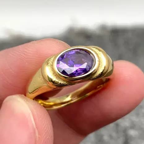 FGS - Horse Eye Zircon 18K Gold Plated Stainless Steel Ring