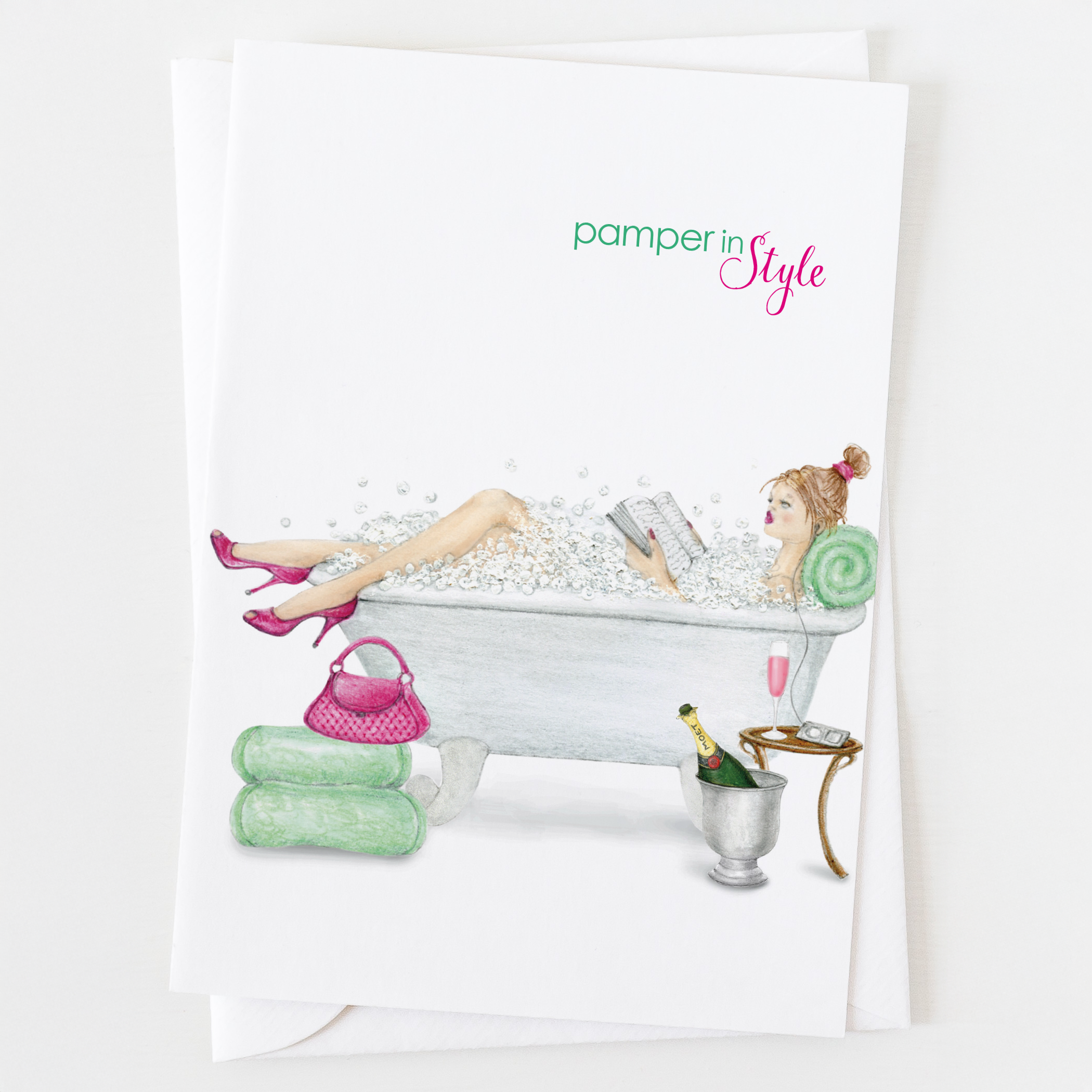 Birthday wishes à la mode! Ann Scott’s hand-illustrated designs are printed on a classic white paper with matching envelope. INSIDE MESSAGE: specially for you happy birthday SIZE: A7 (5”X 7”) PACKAGING: clear sleeve