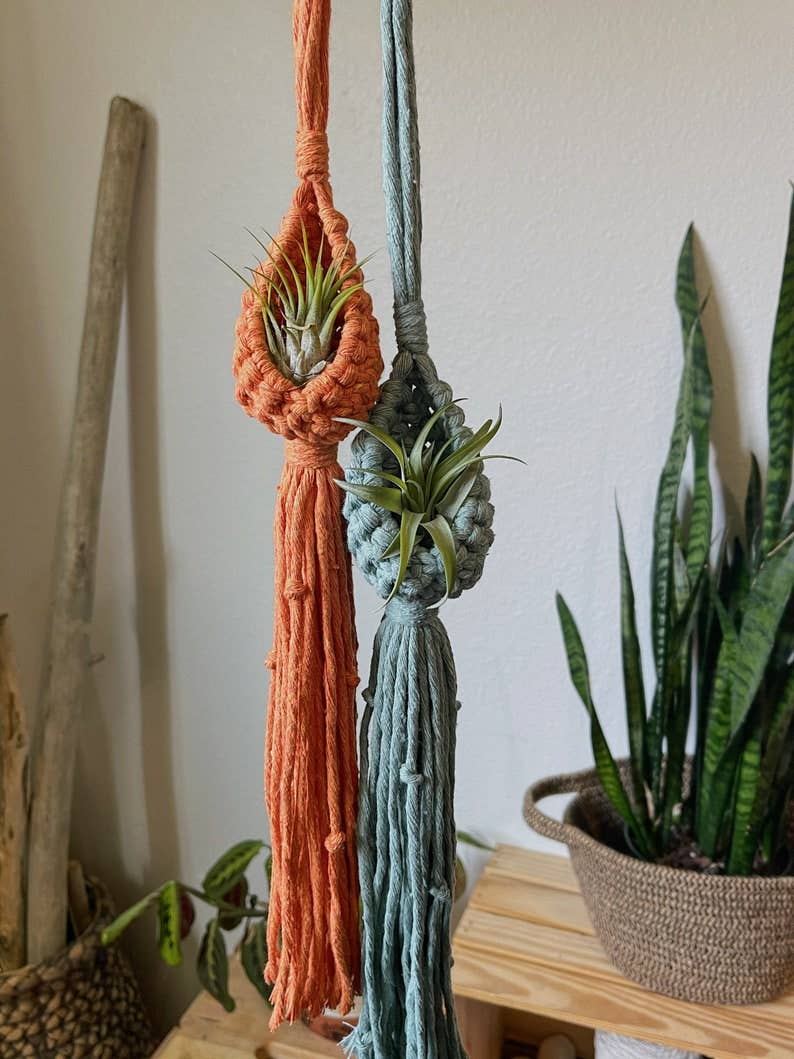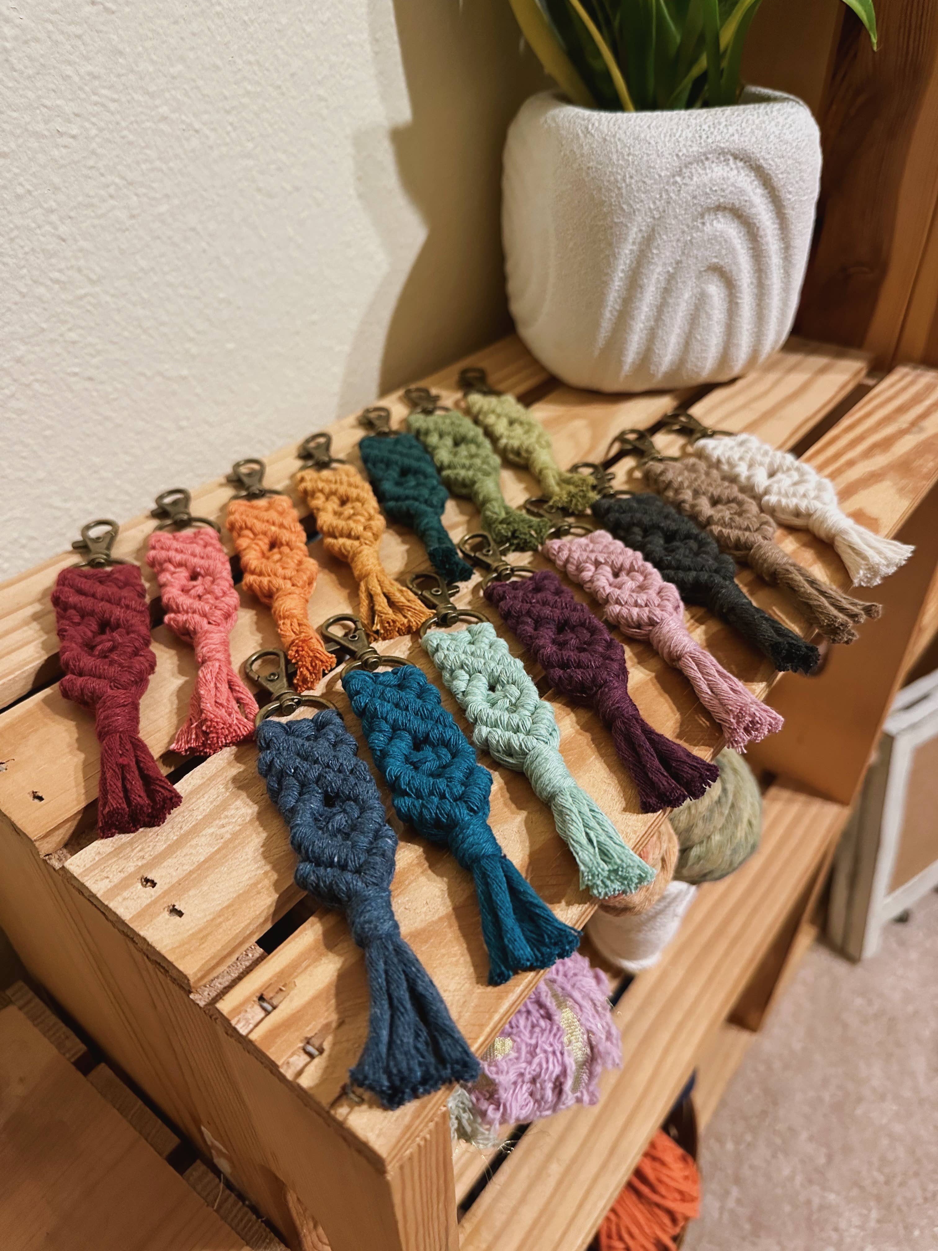 These mini macrame keychains are lightweight and perfect to clip onto your keys, purse, luggage, etc. for a subtle pop of color and texture. They are lightweight and made from recycled cotton cord. They are approximately 4.5 inches in length from the top of the clasp to the bottom of the fray As they are handmade, there may be slight variances.