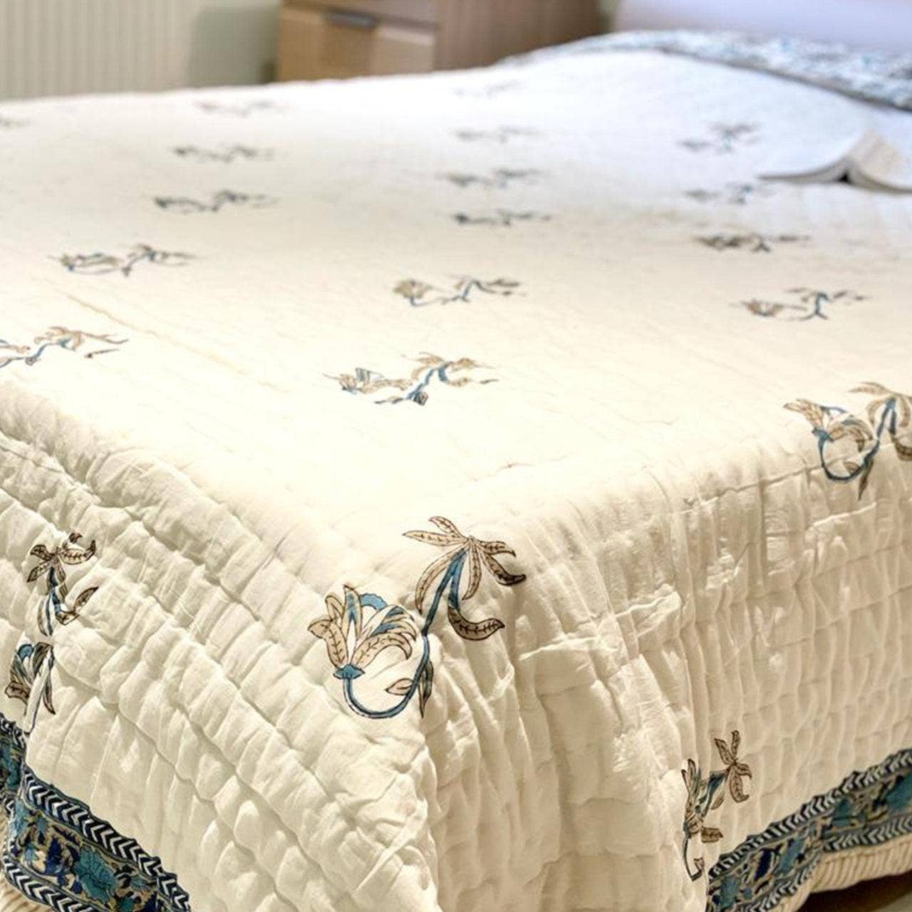 Enhance your room's aesthetic with our White Boho Chic Silk Patchwork Quilt. With its colorful and eclectic design, this quilt adds a touch of personality to any space. Made with high-quality silk, it not only adds style but also provides comfort and durability. Elevate your decor game with this unique piece. Material : Silk Size : Queen (W-60 X L-90 Inch) King (W-90 X L-108 Inch)