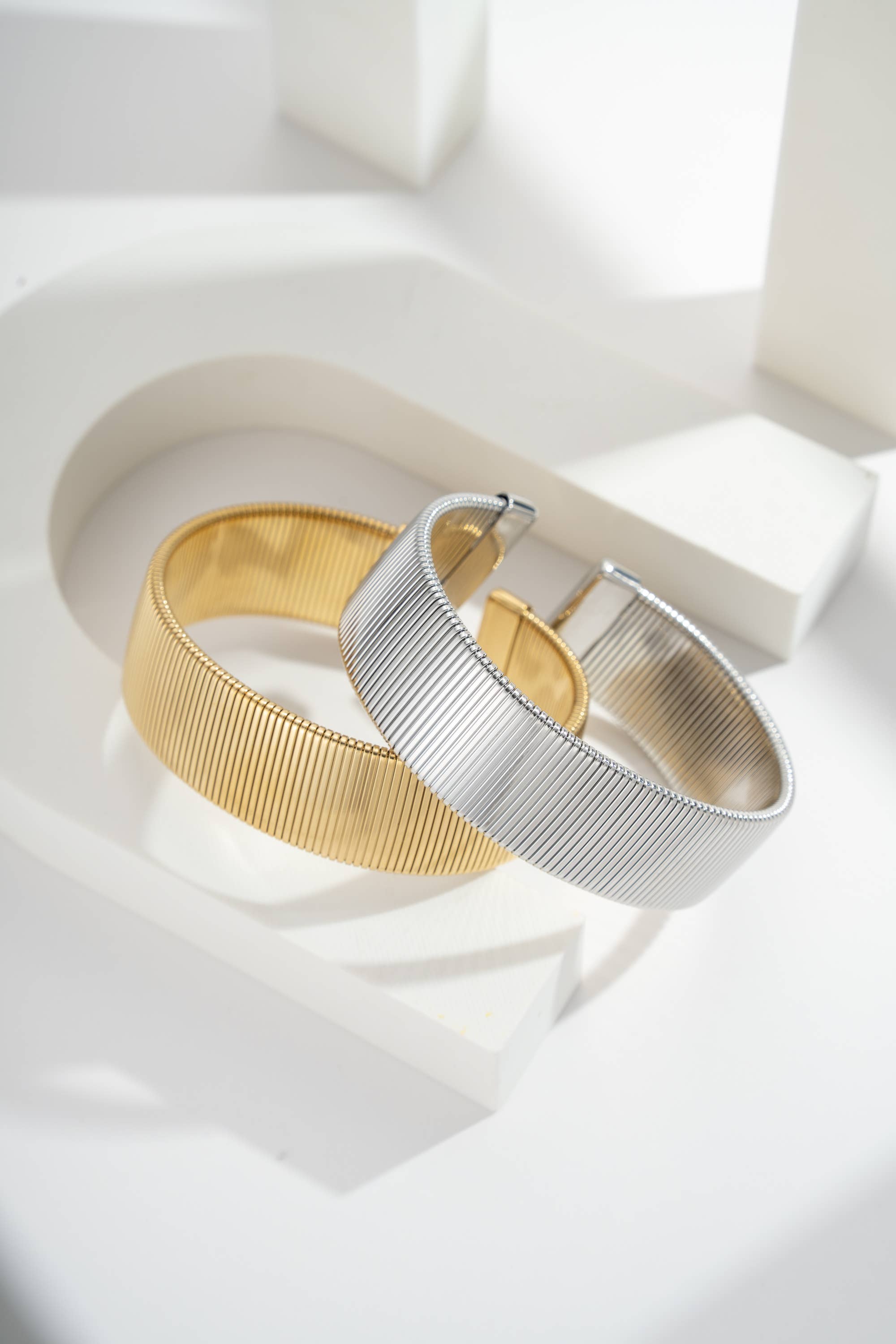 A set of rounded triangular shapes interlaces on this adjustable open stainless steel ring. Its sculptural design evokes the balance between strength and fluidity. Available in gold or silver, it fits all sizes and is water-resistant. A bold and graphic piece of jewelry, perfect for enhancing a hand with character and contemporary elegance. In Stainless Steel, Nickel-Free, Cadmium-Free, and Lead Salt-Free.