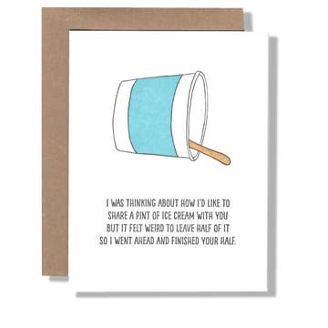 For that person, you know the one. A2 size card 4.25" x 5.5". Blank on the inside. Letterpress printed on 100% PCW paper. Packaged in a compostable sleeve with recycled kraft envelope